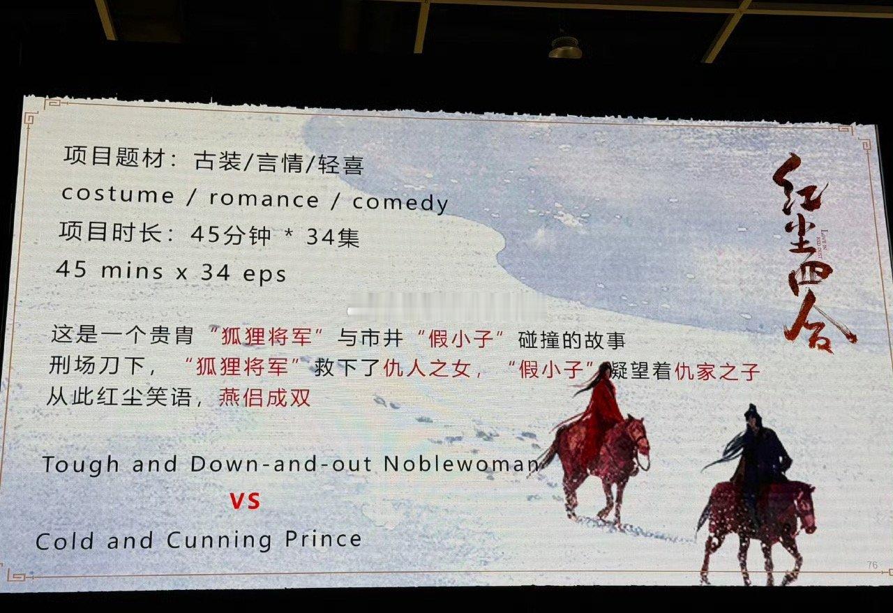 王星越 徐若晗《红尘四合》亮相上海视听精品推介会 ,目前均已完成后期制作,2026年播出项目时长:45分钟*34集800个心眼子的狐狸三节 vs 京城第一打工人