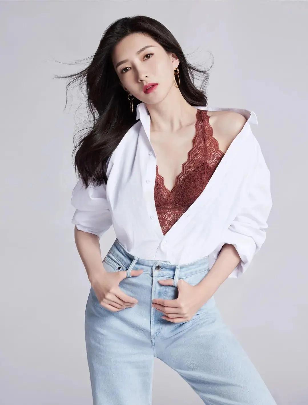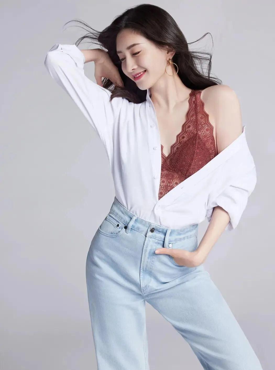 谁能拒绝江疏影的氛围感! 简单衬衫+牛仔裤,被她穿出高级画报感,温柔又撩人,成熟