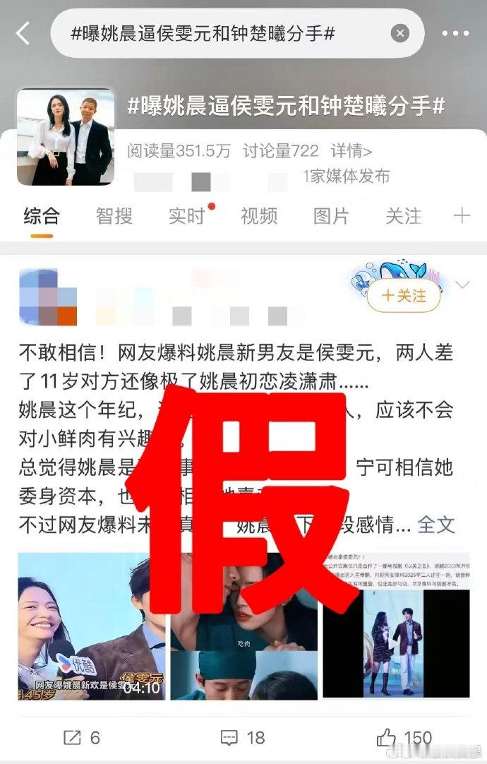 侯雯元方否认和姚晨恋情姚晨方否认和侯雯元恋情 近日,网传姚晨 侯雯元恋情,引热议。对此,侯雯元工作室回应:“勿编故事,勿造谣”,随后也发文否认:“假,谣言止于智者。”
