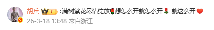 胡兵评论瞿颖:“满树繁花尽情绽放🌹想怎么开就怎么开 就这么开”两位感情真好~