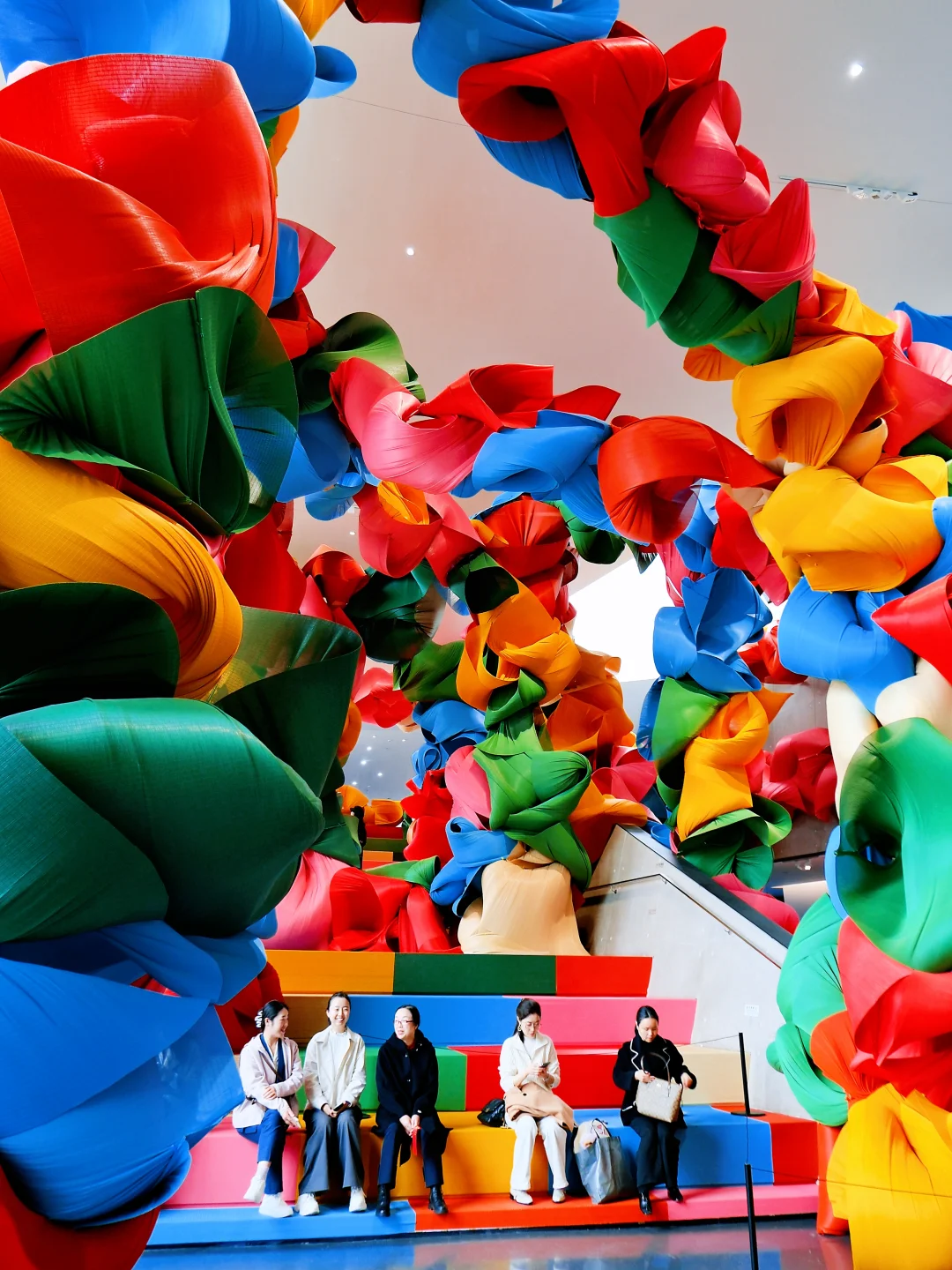 巨大的彩色空间,灵感来自杜甫的“两个黄鹂鸣翠柳,一行白鹭上青天”;色彩提取自成都本土元素:青竹绿、银杏黄、辣椒红……