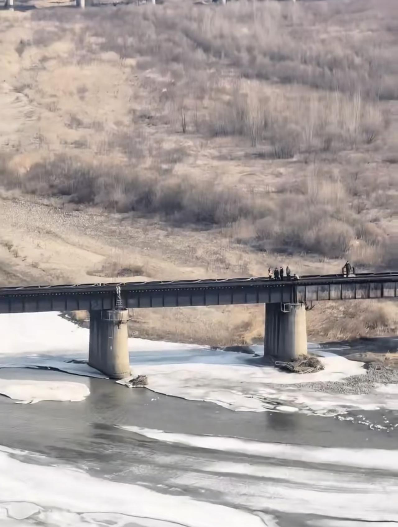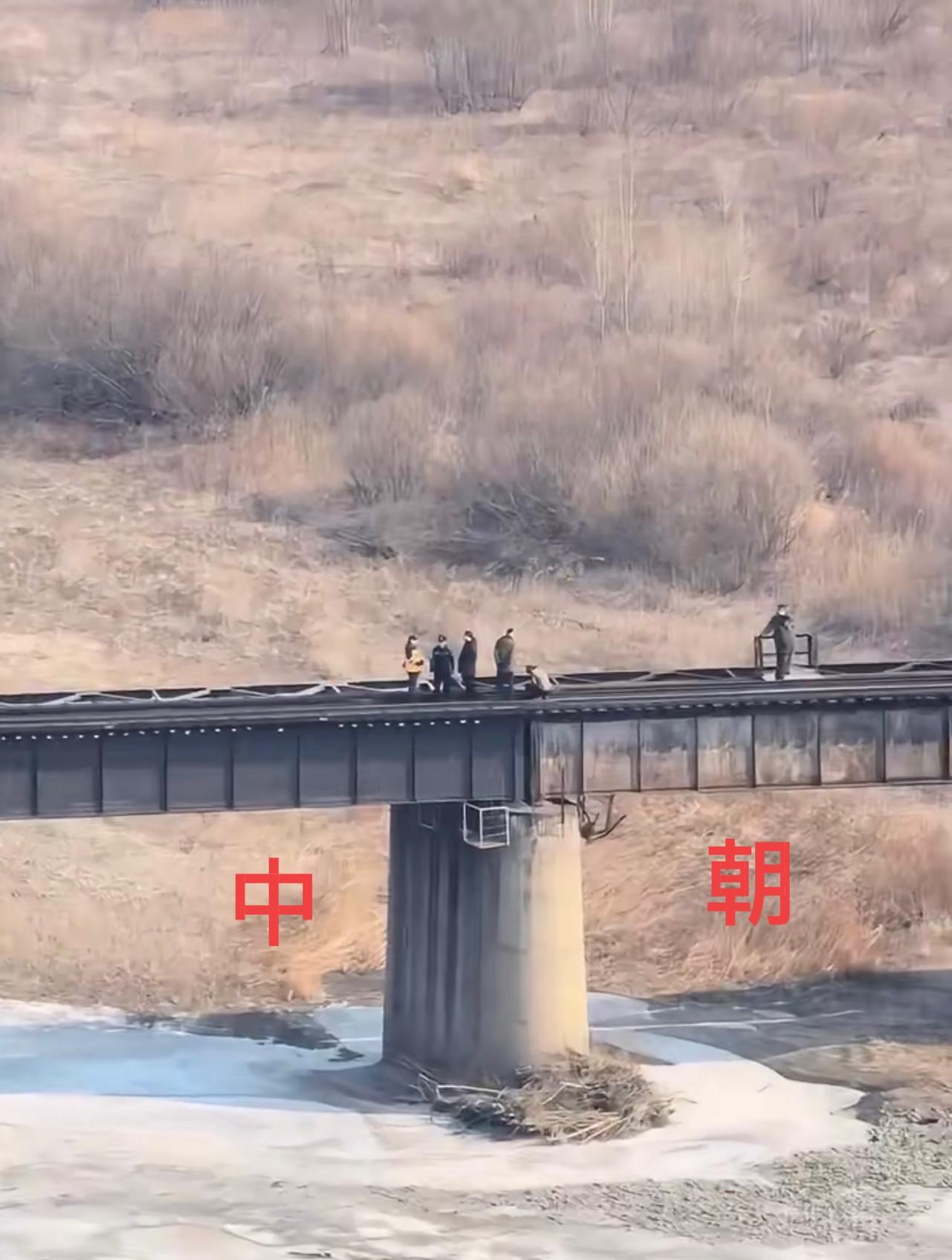 图们市和朝鲜南阳的跨国铁路大桥,放大了看,国境线处桥梁是两个颜色!