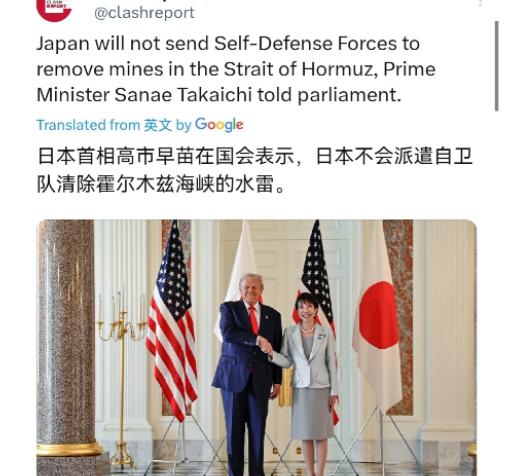 高市早苗做了一个明智的决定!面对美国的施压,高市早苗这一次竟然给顶回去了!3月13日,根据外媒报道,美国此前多次施压要求日本参与护航,这一次高市早苗给说法了。日本首相高市早苗对国会表示,日本不会派遣自卫队前往霍尔木兹海峡排雷。很显然,现在美国跃跃欲试,想要通过强力手段,“打通”霍尔木兹海峡。结果没想到,看起来对美国非常顺从的日本,第一时间竟然撤了。 高市早苗在国会的公开回应没有任何模糊空间,她明确告知议员们,日本自卫队不会介入霍尔木兹海峡的排雷行动,也不会参与美国提议的任何护航相关任务,语气坚决,没有丝毫可以协商的余地。 这个表态直接打脸了美国此前的多次施压,要知道美国当局此前已通过多轮外交渠道向日本施加压力,希望日本能加入所谓的“海峡护航联盟”,配合美军打通这条关键水道。 美国的算盘打得很清楚,自己的军事资产目前正集中精力针对伊朗的进攻能力和相关制造产业,在中东地区的兵力部署已经处于饱和状态,暂时抽不出足够力量应对霍尔木兹海峡的排雷和护航任务,就想让盟友日本顶上去。 但日本政府心里比谁都清楚,霍尔木兹海峡的局势牵一发而动全身,不是随便掺和就能全身而退的。 首先是法律这道坎根本过不去,根据日本和平宪法第九条,日本“永远放弃以国权发动的战争、武力威胁或行使武力作为解决国际争端的手段”。自卫队只能在“专守防卫”框架内行动,禁止以武力目的向他国领土、领海、领空派遣武装部队。 尽管2015年日本修订了安全保障相关法律,解禁了集体自卫权,但前提必须是“与日本关系密切的国家遭攻击,威胁日本存亡”。当前霍尔木兹海峡的冲突,显然不符合这个严苛条件。日本内阁官房长官木原稔在3月11日的记者会上就明确表示,针对当前伊朗局势,日本政府尚未作出属于所谓“存亡危机事态”的判断。 更关键的是安全风险,在霍尔木兹海峡,伊朗占据绝对地理优势。伊朗拥有超过5000枚水雷,既包括传统水雷,也有更先进的磁感应或声感应型水雷,可通过快艇甚至渔船进行快速布设。日本如果在目前冲突状态下到霍尔木兹海峡执行护航任务,即便派出驱逐舰等大型舰艇,也可能遭遇高速快艇袭击,几乎难以防范。日本政府内部有人直接把这项任务称为“自杀式任务”。 从经济层面来说,日本也没有能力承担派遣自卫队前往霍尔木兹海峡的成本。日本自卫队如果派遣舰艇前往该地区,单艘驱逐舰每天的运营成本就高达5000万日元,再加上人员补给、装备维护等费用,长期部署下来,每年至少需要投入数百亿日元,这对已经背负1200万亿日元国债、财政压力巨大的日本来说,无疑是雪上加霜。日本目前正全力推进经济复苏计划,有限的财政资金需要投入到民生和产业升级上,根本没有多余的钱用于海外军事行动。 其实,不止日本,美国的其他盟友也大多对参与霍尔木兹海峡护航持谨慎态度,美国此前向韩国、北约成员国等施压,要求它们派兵参与,但应者寥寥。这也说明,美国的霸权主义已经越来越不得人心,各国都开始重视自身的国家利益,不再愿意一味被美国捆绑。 当然,高市早苗的这个决定,也必然会引起美国的不满,可能会影响日美同盟关系,但从日本的角度来看,这无疑是一个明智的选择。毕竟,没有哪个国家会愿意为了维护盟友关系,而牺牲自己的国家利益。霍尔木兹海峡的局势复杂多变,任何国家的贸然介入,都可能引发新的冲突,在这个意义上,她的决定不仅明智,而且必要。