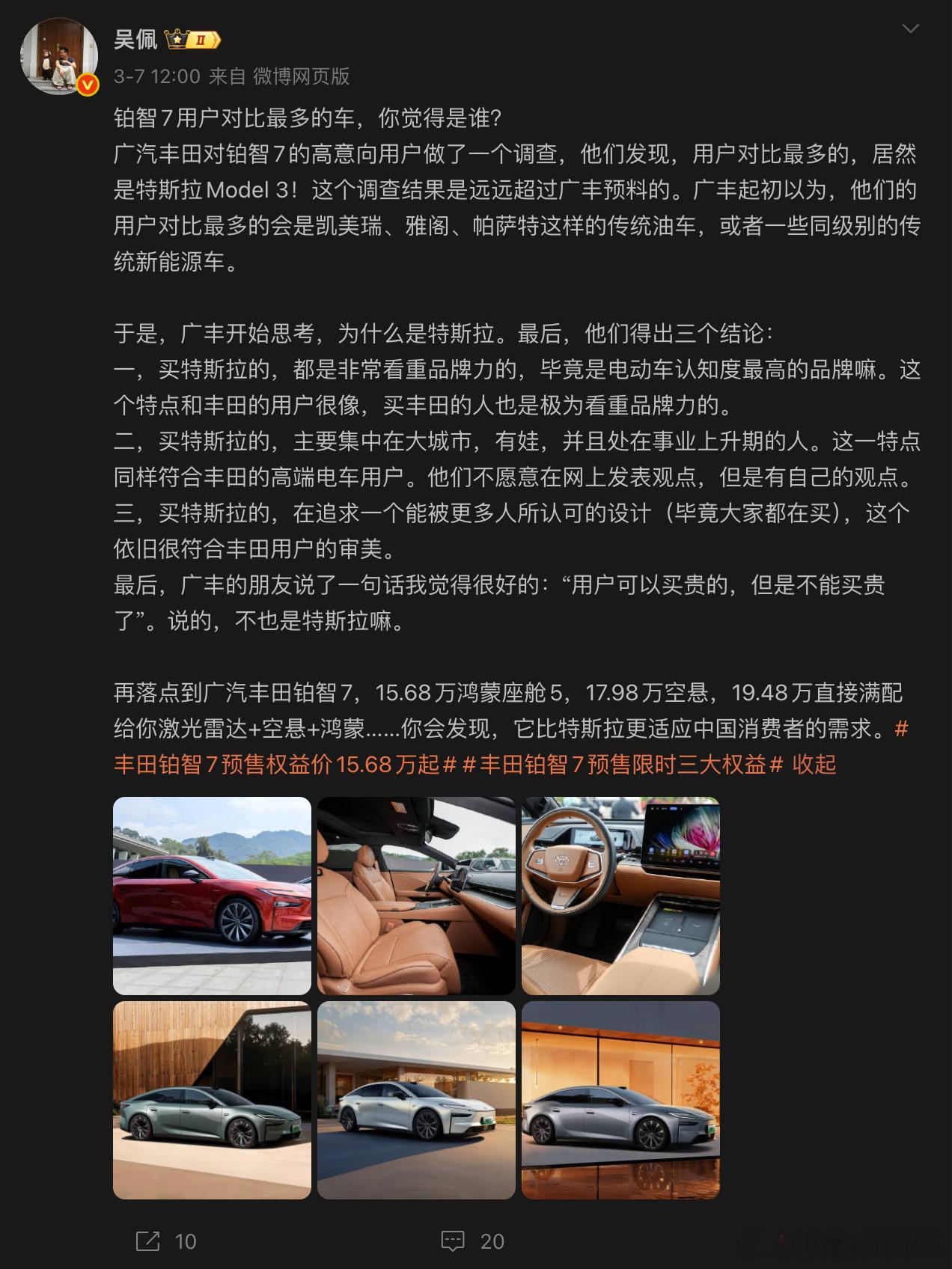 买特斯拉和丰田电车竟是同一批人 丰田铂智7用户首选对比Model3