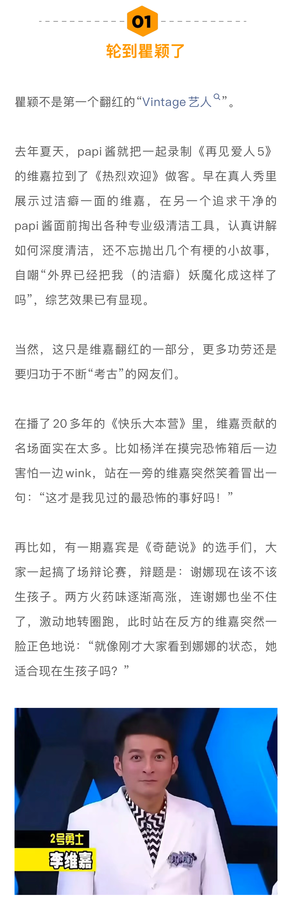 通过瞿颖在节目中的分享,大家会发现,Vintage艺人的翻红没有煽情、不走人设、不刻意出糗,当有人质疑瞿颖皮肤发亮是不是打了针,她马上反驳“我从来不医美”,而后扭头问papi酱:“肉毒算吗?”就问问这种对话,有几个综艺编剧能想到?又有几个艺人能如此大方地聊出来?
