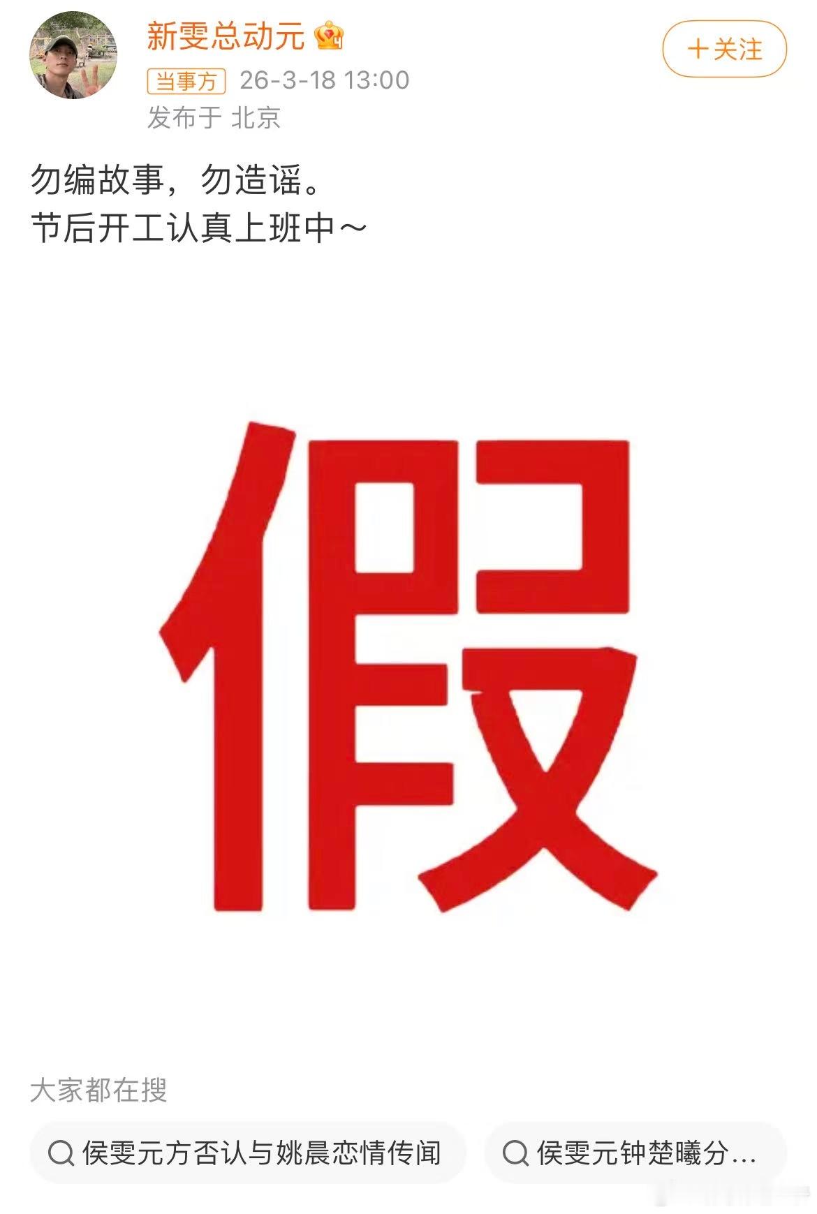 姚晨 侯雯元 姚晨侯雯元的传闻辟谣来了!正常合作关系被无端绑定、恶意揣测,尤其是对刚官宣离婚的女艺人过度解读,实在是不安好心!当事人都发声了,大家散了吧,别脑补剧情了,专注演员作品!