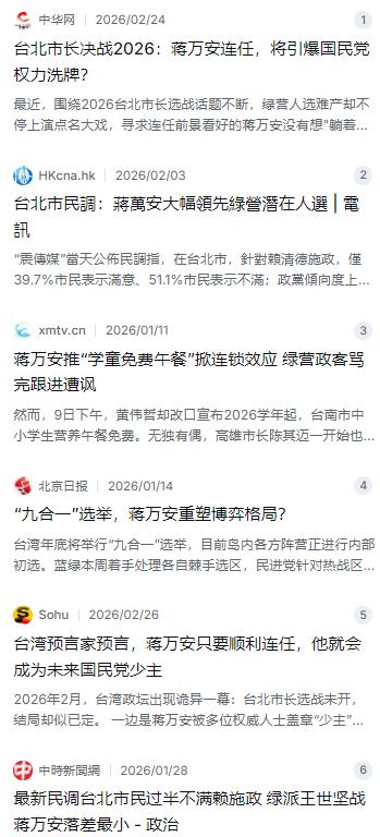 台湾政坛这片天,怕是要变了!岛内现在流传着一个预言:只要蒋万安2026年顺利连任,国民党的“少主”就将正式归位。 麻烦看官老爷们右上角点击一下“关注”,方便您进行讨论和分享,感谢您的支持! 台湾政坛这片天,怕是真的要变了。最近岛内从上到下都在传一个说法:只要蒋万安能在2026年年底顺利连任台北市长,那他在国民党内的“少主”位子就算是坐稳了。这可不是随便说说,看看现在的局势,蓝营这帮人心里跟明镜似的,折腾了这么久,总算等来了一个能扛大旗的。 说起蒋万安现在的底气,那真是实打实的民调撑起来的。根据“震传媒”今年1月底发布的最新数据,他在台北市民中的施政满意度冲到了惊人的69.2% 。这数字啥概念?就是把绿营那些潜在对手远远甩在了身后。模拟选举中,不管是派王世坚还是郑丽君出来,蒋万安的支持度都至少领先对手20个百分点,哪怕是差距最小的王世坚,也落后他19.3% 。这种碾压式的优势,在台北市这么多年选举里还真不多见,难怪绿营那边现在提名人选像是烫手山芋,谁都不想出来当炮灰。 蒋万安这局能打得这么顺,靠的不是在那里跟民进党打口水战,而是实打实地抓民生。他搞的那些政策,听起来不惊天动地,但每件都踩在了老百姓的痛点上。比如他一直盯着的“大都更时代”,专门针对老旧社区改造,让那些住在老公寓里的老人家看到了希望。还有针对年轻人的,搞创业基地、提供资源,硬是把他在20到29岁这群最挑剔的选民里的支持率拉到了54% 。最绝的是今年初他扔出的那颗“震撼弹”——从2026学年开始,台北市所有公私立中小学营养午餐全面免费 。这一招太狠了,直接逼得民进党执政的县市像是台南、高雄,一开始还嘴硬骂他“炫富”,结果没两天就灰头土脸地宣布跟进,被岛内媒体笑称是“连滚带爬”地追随蒋万安 。这一波操作,让全台湾的家长都看在眼里,什么叫顾肚子,什么叫顾面子,高下立判。 现在的国民党,表面平静底下其实暗流涌动。党主席郑丽文虽然战斗力强,但毕竟没有当过县市首长,在“经济学人”的专访里也坦承自己的挑战很大,岛内最新数据显示她的信任度目前只有28.7% 。而台中市长卢秀燕虽然也被看好,但在提名上的算计让有些支持者寒了心。至于韩国瑜,人气还在,但2020年那场大选的阴影终究是道过不去的坎。这么一圈看下来,坐镇台北、手握行政资源又有高人气加持的蒋万安,自然就成了蓝营内部那个“最大公约数”。只要他连任成功,手里有了更厚的资本,到时候在党内的分量压过党主席,完成世代交替,几乎是水到渠成的事。 当然,路也不会那么好走。民进党肯定不会眼睁睁看着他舒舒服服地躺着赢,现在已经开始放话,不管派谁出来,首要任务就是要把蒋万安“缠”在台北市,让他没法分身去帮其他县市的蓝营兄弟辅选 。再加上还有个民众党在旁边虎视眈眈,随时可能派人出来搅局,搞个“三脚督”增加变数。更要紧的是,台海局势这么紧张,赖清德当局天天搞对抗,蒋万安虽然在两岸关系上相对理性,坚持办“双城论坛”强调交流 ,但这种在夹缝里求稳的做法,能不能扛得住未来更大的风浪,也是个未知数。不过对于现在的台北市民乃至很多台湾民众来说,能让大家安心过日子的人,或许就是最对的那个人。