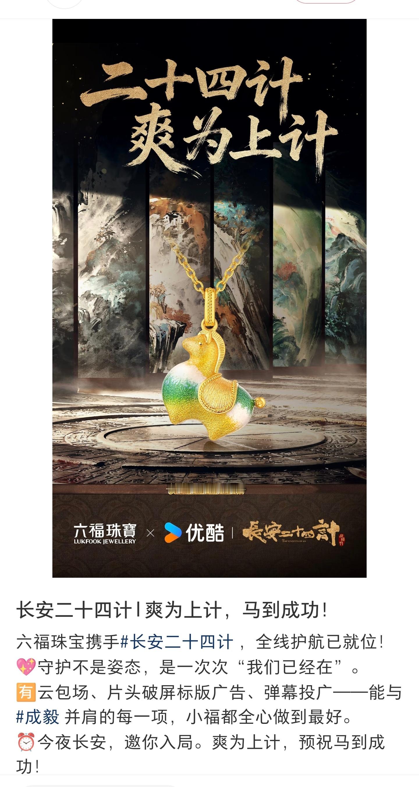 成毅作为全球代言人的六福珠宝新战报——冰钻系列珠宝销售额迈向十九亿,唐宫文创《长安二十四计》联名系列也取得百天破4亿的好成绩!🎉🎉🎉成毅的商业价值简直太强了。