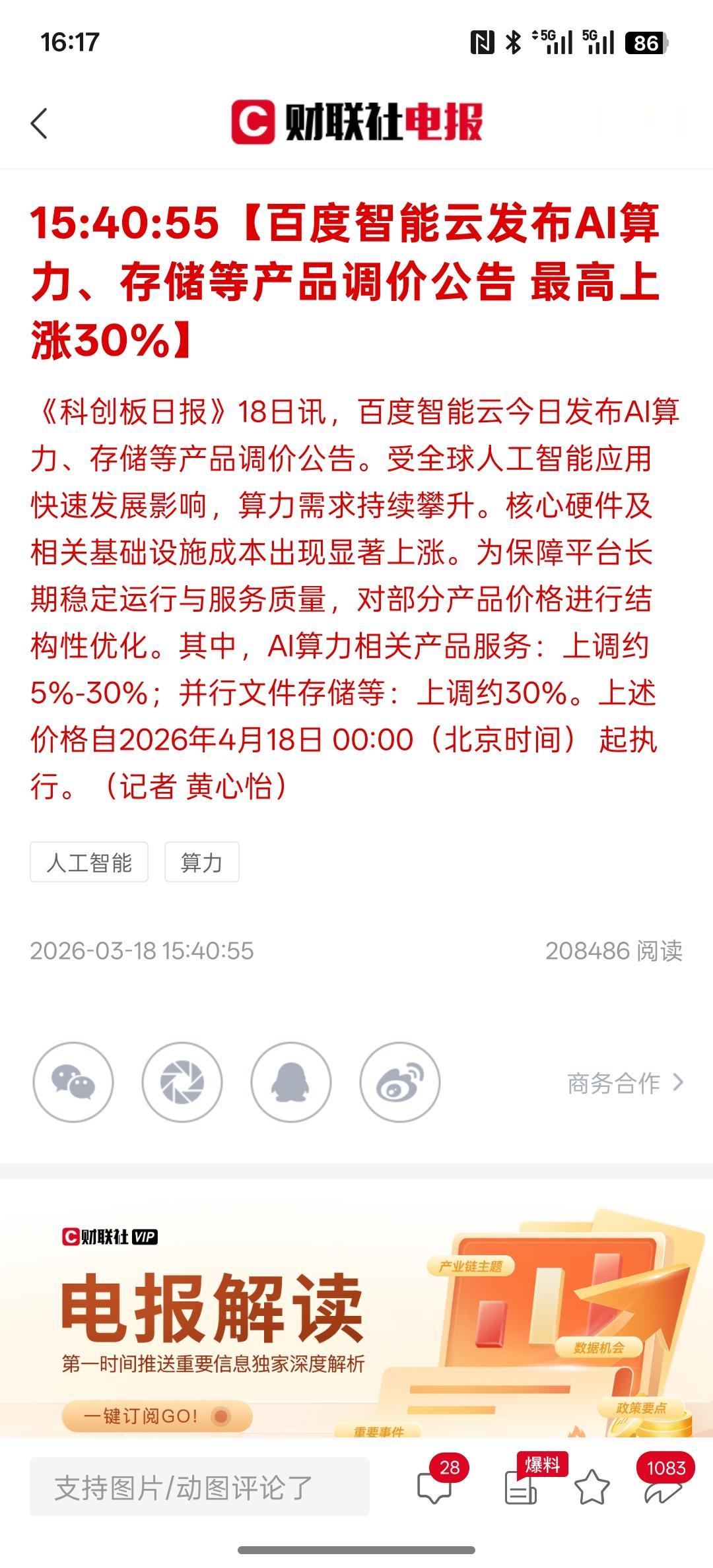 阿里云与百度同时宣布算力卡涨价,全球AI需求激增、Token调用量上扬 阿里云部分产品最高涨34%,据这两家公司的公告来看,上涨幅度可能高达30%左右。随着AI人工智能的快速发展以及全球对AI人工智能的发展,尤其是算力的需求大幅增加,那么在算力服务方面以及算力卡算力的需求都呈现出增长的趋势。那么,涨价的趋势也将随之而来!存储香菇类的产品价格也在上涨幅度! 那接下来就看市场是如何反应!整体算力行业出现了大幅的上! 现在存储芯片的缺口越来越大,而且手机也开始出现了价格上调