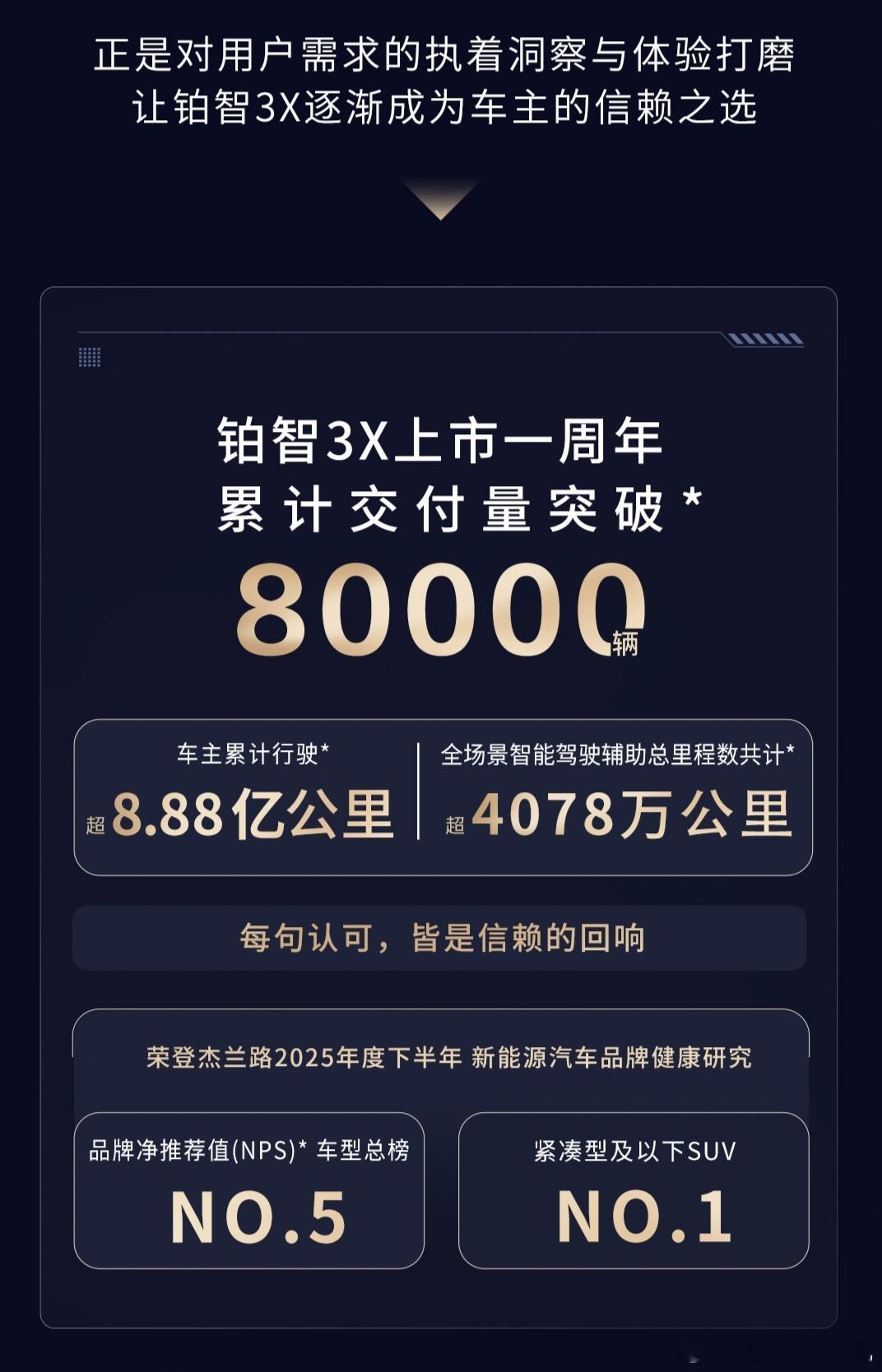如果把时间线拉长,你会发现“常用常新”,恰恰就是铂智3X上市以来最核心的竞争力之一,累计交付了8万辆、连续5个月登顶合资新能源销冠,这些市场成绩固然亮眼,但更关键的是,用户把车买回家之后,它的体验没有止步于交付那一刻,此前两次OTA、累计52项功能升级,再到这次近乎代际跨越的进化,铂智3X一直在兑现一个核心承诺:可持续进化,越开越好用!