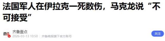 法国总统马克龙凌晨发文怒斥:我的士兵被打死了,这次绝不能忍! 3月13日凌晨,马克龙在社交平台先“开火”。一名法军在伊拉克埃尔比勒遇袭身亡,另有6人受伤、2人伤重,消息像冷水一样浇进法国政坛。 更扎眼的是,这并非前线冲锋的伤亡,而是驻联军基地的培训与协同任务遭到无人机点名打击。法国在中东这套“低调存在”还管用吗?这次伤亡会不会把法国国内的政治裂缝撕得更大? 答案很明确,法国在中东的“低调存在”早就不管用了。遇袭的法军部队是第七阿尔卑斯猎兵营,这支法国陆军精锐从2015年就进驻伊拉克。他们不参与正面作战,只负责培训当地武装、协调反恐情报,全程保持低调姿态。 可中东的混乱局势,从来不会因为“低调”就手下留情。这次袭击的目标特别精准,无人机直接冲破基地防空警戒,专门盯着法军驻扎区域打击。多方消息显示,袭击大概率是伊拉克境内什叶派相关武装所为。 这些武装分子根本不看法军的“低调”定位,在他们眼里,法军跟着联军驻扎在伊拉克,就属于西方阵营的一员。哪怕法军不主动挑事,不参与正面冲突,也照样会被当成打击目标。 更重要的是,就在法军遇袭前一天,意大利驻埃尔比勒的基地也遭到了无人机袭击。意大利反应特别快,当即就撤回了上百名士兵,还有一部分转移到了约旦,坚决不留在这片是非之地。 法国却没有吸取盟友的教训,非要硬撑着维持所谓的“低调存在”。马克龙政府一边不想被卷进美伊对抗的漩涡,一边又舍不得放弃在中东的战略利益,这种摇摆不定的态度,最终让士兵付出了生命代价。 要知道,这已经是2025年8月以来,法国在中东地区首次出现军人阵亡事件。此前法国一直刻意控制驻伊兵力规模,总共也就留了600人左右,全程以“非战斗”角色定位自己。 可低成本自杀式无人机的普及,早已打破了这种“非战斗就安全”的幻想。这种无人机造价低廉、操作简单,却能轻松突破传统防空系统,让看似安全的联军基地,变成了随时可能遭遇袭击的危险区域。 再说说国内的政治裂缝,这次伤亡肯定会让裂缝变得更大。2027年法国总统大选已经进入预热阶段,海外军事行动和军人安全,一直是法国竞选辩论的核心议题。 马克龙这次凌晨发文怒斥,看似强硬,实则也是在稳住国内舆论。法国国内早就有超过六成民众,认为政府应该重新审视海外军事行动的必要性,大家更希望政府把资源投入国内民生,而不是遥远的中东战场。 法国近年经济一直不景气,通胀压力大、失业率偏高,老百姓本就不满情绪浓厚。这次士兵阵亡的消息传来,民间对海外驻军的质疑声瞬间被放大,反战呼声也越来越高。 反对党派自然不会放过这个机会。接下来法国议会大概率会发起紧急质询,甚至可能推动不信任动议,专门针对马克龙政府的海外驻军政策发难。 马克龙所在阵营的优势本就不明显,此次事件一旦处理不当,不仅会影响他的政治声望,还可能直接断送他的连任机会。毕竟法国政坛有前车之鉴,当年萨科齐因为利比亚战争的巨额军费和人员伤亡,最终输掉了总统选举。 马克龙的愤怒,不只是对遇难士兵的痛心,更有对自身困境的无奈。他一边想推动欧洲战略自主,摆脱对美国的安全依赖,一边又无法彻底与美国决裂,只能在中东夹缝中求生存。 事发后,马克龙虽然语气强硬,但行动上却格外谨慎。他迅速与伊朗方面通话,要求对方停止支持代理人袭击,却没有采取任何实质性的报复行动。 他甚至在后续的会议中明确表示,法国不是冲突当事方,不会参与霍尔木兹海峡的护航行动,只愿意在局势平静后再参与相关体系构建。这种前后矛盾的表态,恰恰暴露了法国的被动。 说到底,法国的“低调存在”,本质上就是一种自欺欺人。在中东复杂的地缘博弈中,没有真正的中立,也没有所谓的“安全低调”。要么彻底抽身,要么坚定立场,摇摆不定只会付出更多代价。 这次士兵伤亡,不仅给法国的中东战略敲响了警钟,也让马克龙的执政之路变得更加艰难。国内的政治压力、民众的反战呼声、海外的安全风险,三重压力叠加之下,马克龙的每一个选择,都可能影响法国的未来走向。 法国在中东的“低调存在”已经彻底失效,国内的政治裂缝也被进一步撕开。马克龙那句“绝不能忍”,更像是一句无力的呐喊,毕竟他现在面临的困境,早已不是一句强硬表态就能解决的。