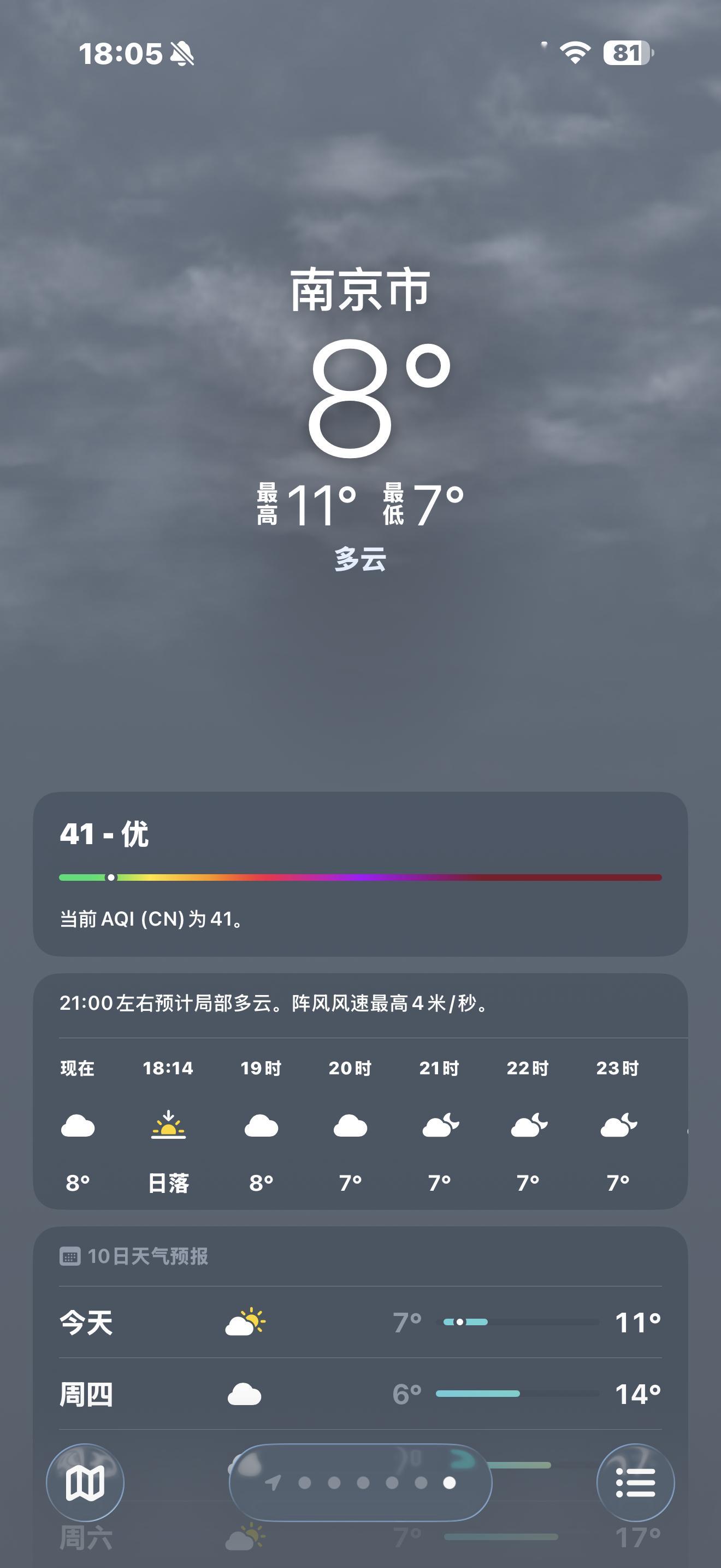 不知道明天去南京路上要穿啥我这边25度 南京才8度