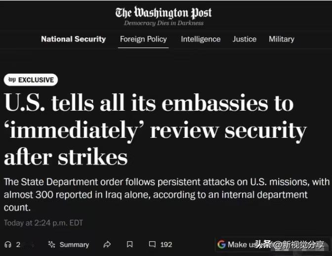 美国已经意识到不对劲! 据《华盛顿邮报》审阅的一份周二发出的电报显示,美国国务院已下令全球所有美国外交机构在中东战争后“立即”进行安全评估。 可能很多人没太在意这个消息,但只要稍微捋一捋就知道,这绝对不是一次普通的例行检查。这次的命令覆盖全球所有美国外交机构,不是某一个地区,不是某几个国家,是全世界范围的。而且要求立即执行,没有缓冲时间,这就说明,美国是真的察觉到了风险,而且风险来得很急。 熟悉美国过往操作的人应该知道,美国很少会下这种全球范围的安全评估命令。上两次这么大动作,一次是2001年911事件之后,当时美国本土遇袭,全球的美国目标都成了潜在袭击对象,才搞了一次全面的安全排查。另一次是2012年班加西事件之后,美国驻利比亚的领事馆遇袭,大使身亡,之后才紧急给全球的外交机构升级安全措施。这两次都是已经出了严重的事件,才事后进行整改,这次不一样,是提前动手,说明美国已经预判到,可能要出大事。 这次的直接触发点,就是持续的中东战争。这段时间中东的局势大家都看在眼里,美国一直站在以色列这边,不管是军事上还是外交上,都给了以色列大量支持。但这么做的代价,就是彻底得罪了整个阿拉伯世界,还有全球很多伊斯兰国家和群体。之前已经有不少武装组织,把美国当成了袭击目标,美国在中东的军事基地,已经挨了多次袭击,红海的航运也一直没消停。现在美国怕的,就是这种不满情绪从中东蔓延到全球,最后自己的外交机构,成了各地袭击的靶子。 说白了,这背后就是美国现在的两难处境。本来美国这些年一直想把重心往别的地区挪,结果中东这摊子事怎么都甩不掉。一边要给以色列撑腰,一边又怕引火烧身,最后搞得自己在全球的外交机构都要提心吊胆。要知道,美国在全球有几百个军事基地,到处都有自己的武装力量,现在连自己外交人员的安全都要全面排查,这背后的信号,其实已经很明显了。 各位读者你们怎么看?欢迎在评论区讨论。
