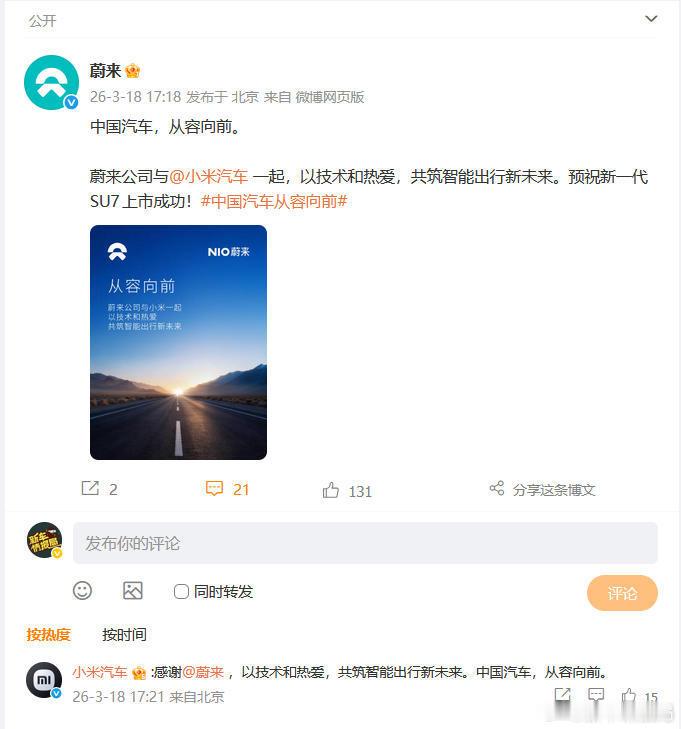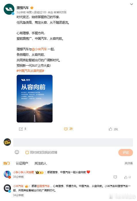 多家车企祝新一代SU7上市成功 新一代SU7将于3月19日正式上市。刚刚,有多家