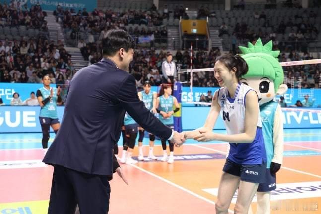 国际排坛动态韩国女排GS加德士赛前给影后赠送了一个14号的球衣 GS加德士致敬梁孝真V联赛常规赛告别战,赠送14号纪念球衣相框及花束