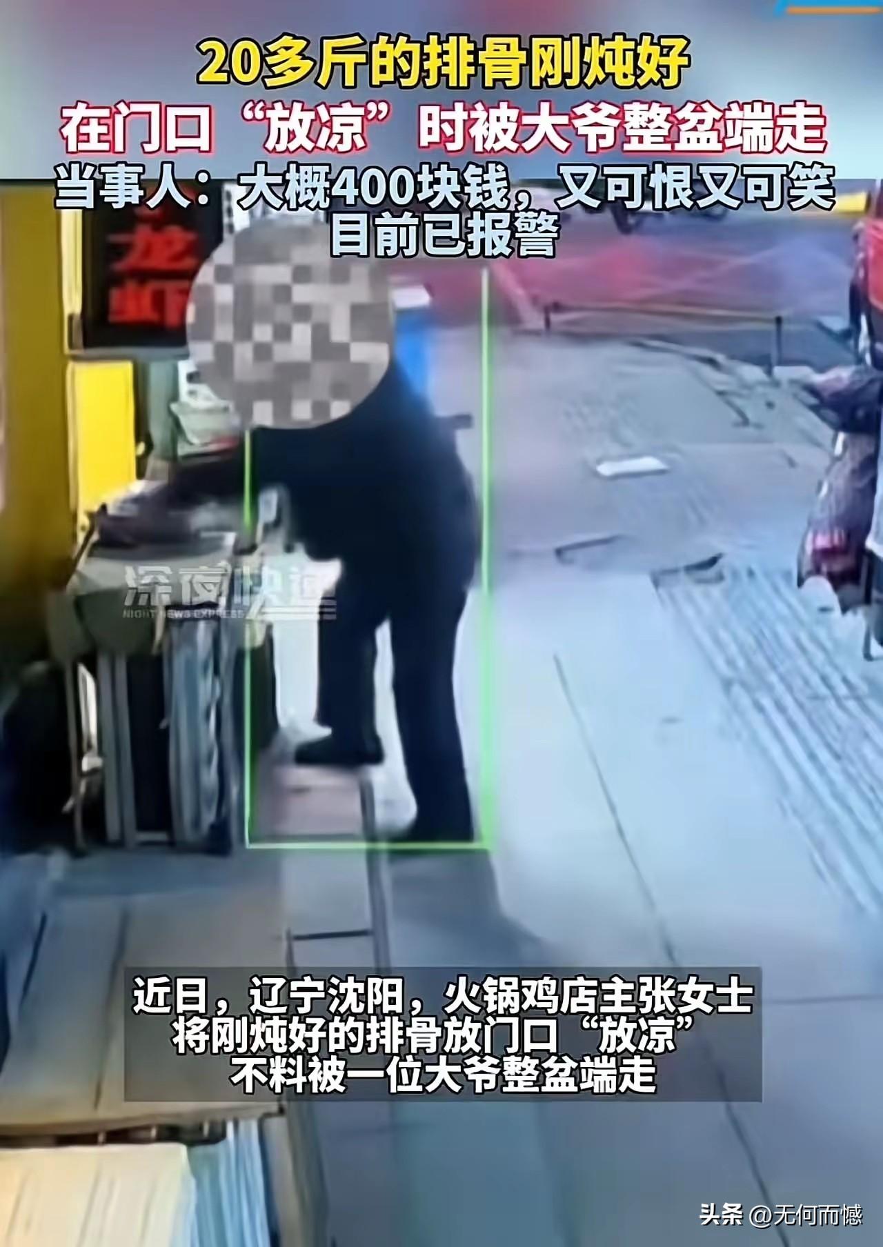 这个老头也是够贼的了,胆子也是够大的了,身体素质也是够好的了,趁人不注意,竟然大摇大摆的把火锅店一盆炖熟的排骨给端走了,好家伙,连盆一起给端走的,他以为没人看见就没事了,他哪曾想到,监控把他的行为看的一清二楚,这又怎么能够跑得掉?丢人现眼,可笑可叹!