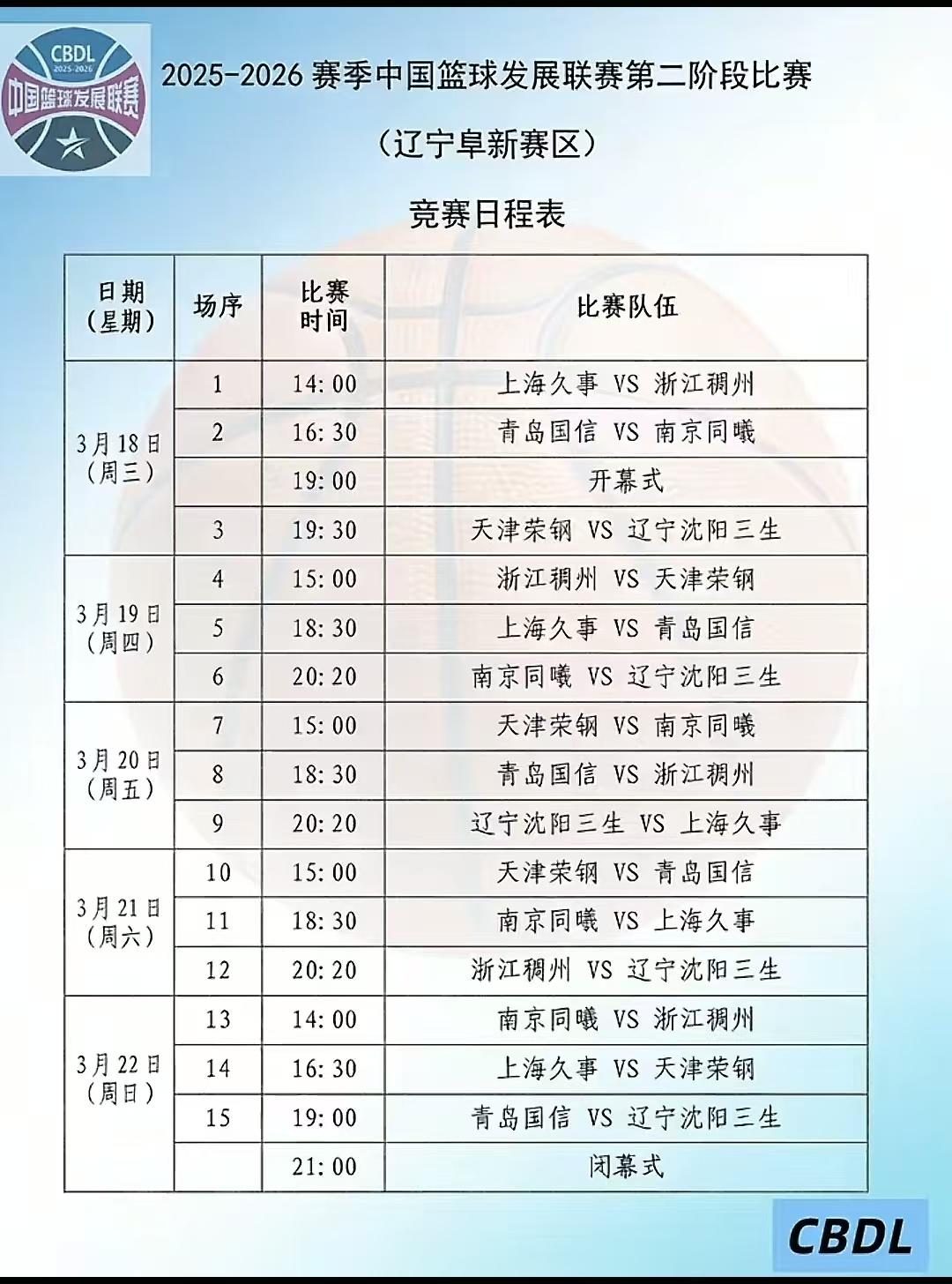 今晚19:30,在阜新举办的CBDL联赛,辽宁队将于天津队比赛,辽宁队由刘志轩担任主教练,队员中有邢维浩、刘星言、赵森、孙福恒、于善元、代彦龙等一队球员,还有付远旭、李孟希、姚清源等潜力小将。 辽宁队将在3月18日到22日,5天打五场比赛,今天18日辽宁队与天津队比赛,19日辽宁队和南京同曦比赛,20日辽宁队和上海队比赛,21日辽宁队和浙江稠州比赛,22日辽宁队和青岛队比赛。 辽宁队因为是在阜新主场,所以比赛都安排在晚上进行,希望球迷可以去主场给他们加油助威。