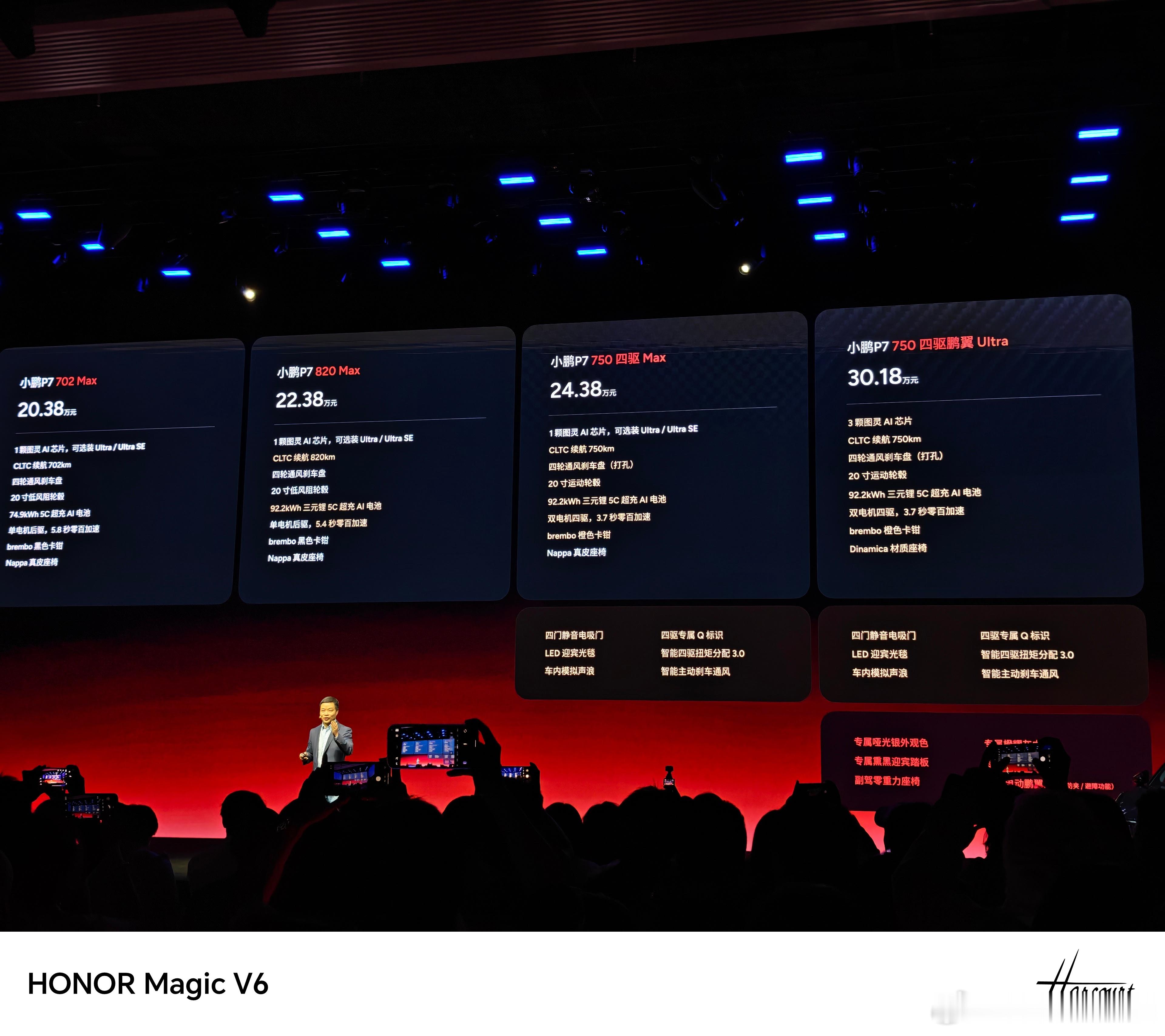 小鹏P7黑白红新色20.38万起除了新外观和新内饰颜色还多了Max和Ultra SE版本对于更看重驾控对智能化需求没那么高的多了选择,具体售价如下702 Max版 20.38万元820 Max版 22.38万元750 四驱 Max版24.38万元750 四驱鹏翼 Ultra版 30.18万元加1.2万元可升级为搭载2颗图灵AI芯片+第二代VLA的Ultra SE加2万元可升级为搭载3颗图灵AI芯片+第二代VLA和VLM大模型的Ultra心动了吗?小鹏P7这次太全面了