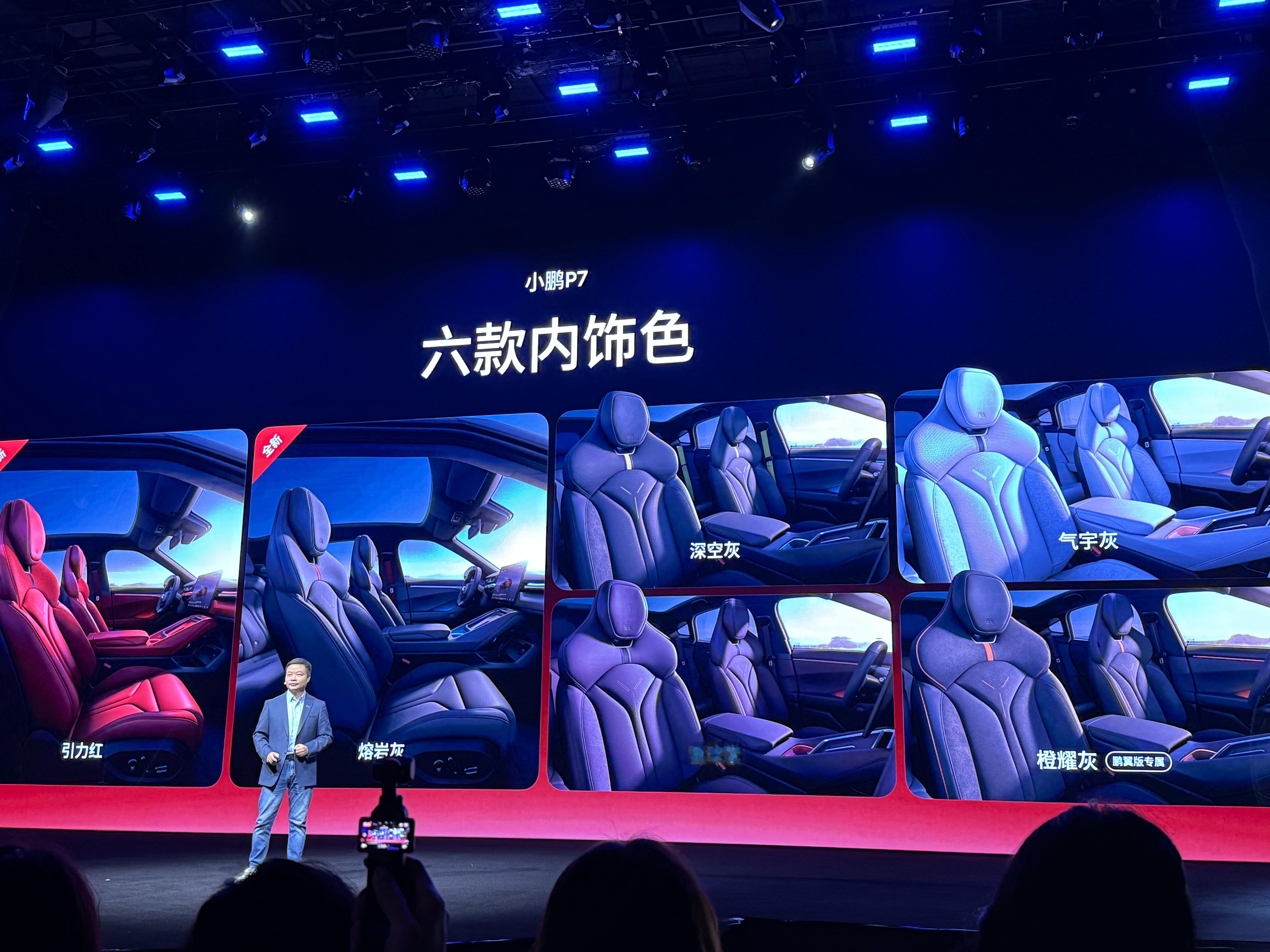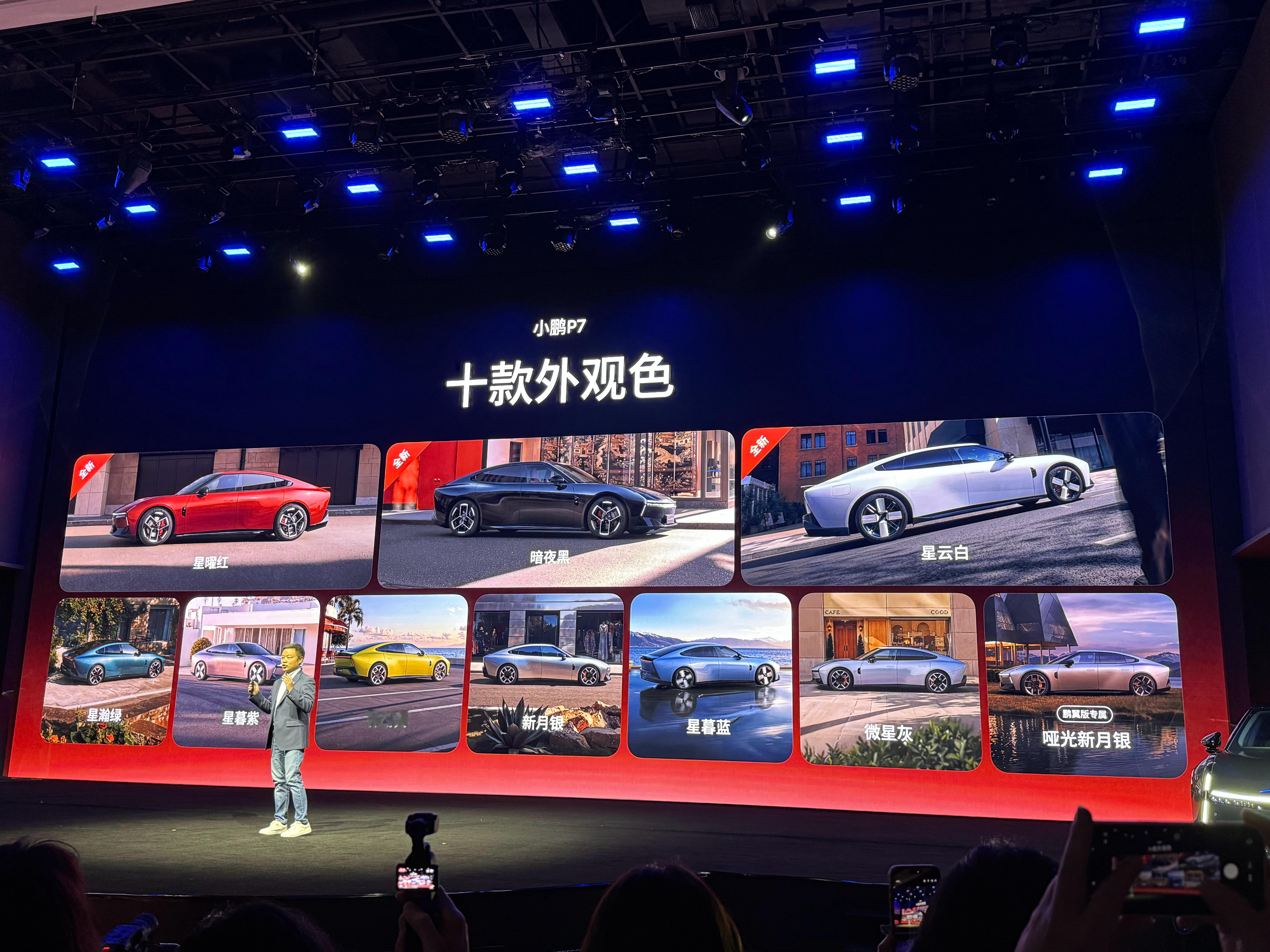 全新 P7 新增了三款外观配色、两款内饰配色,也是目前小鹏最多配色可选的车型。