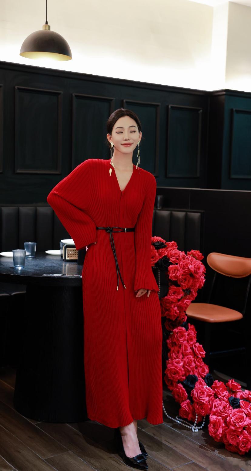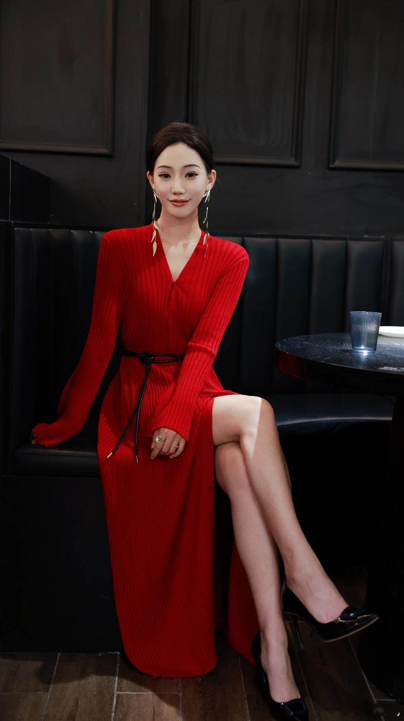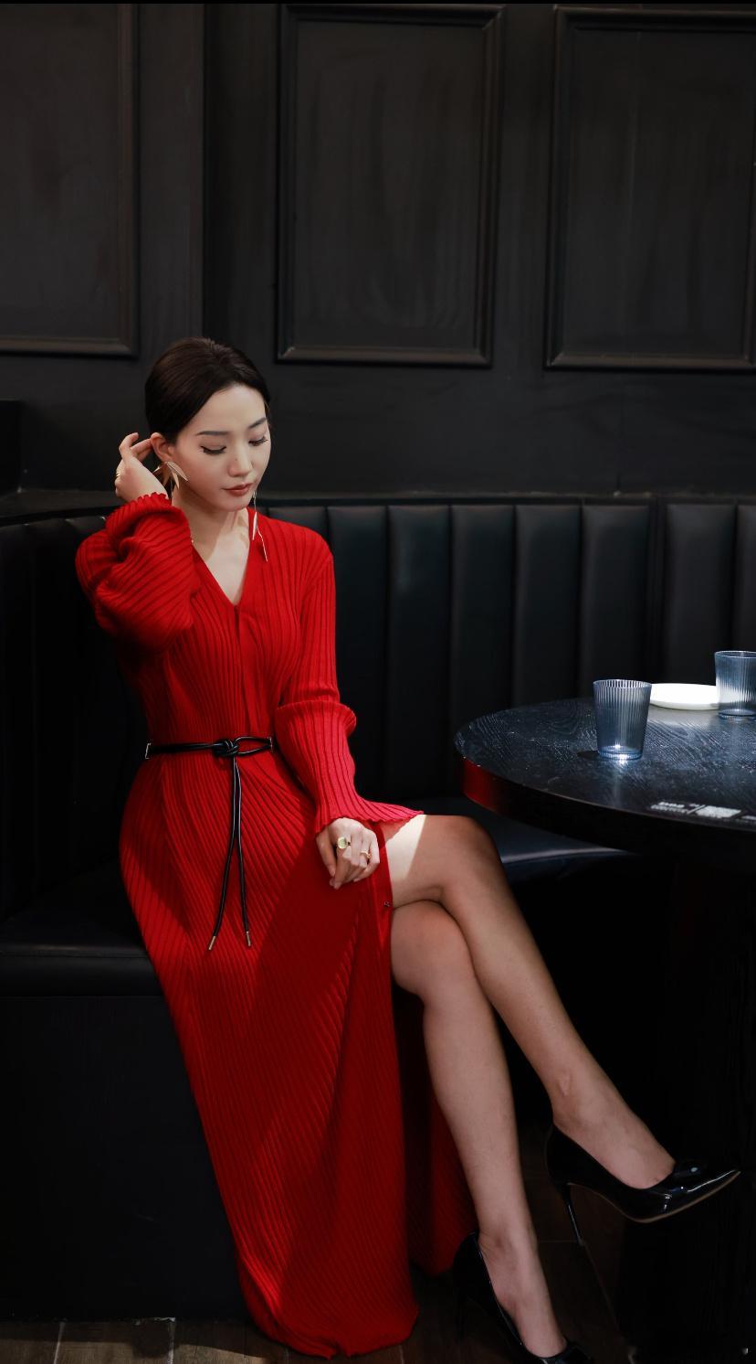 优雅黑V领毛衣搭配米色短裙,尽显都市女性魅力!👗✨
