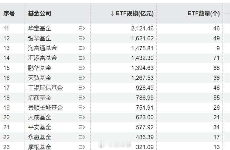 海富通基金今年蛮猛的,也没见他们怎么做营销宣传,靠着产品魅力,今年增量也不少,第17位的工银瑞信,一直徘徊在千亿门口,就是不进去。