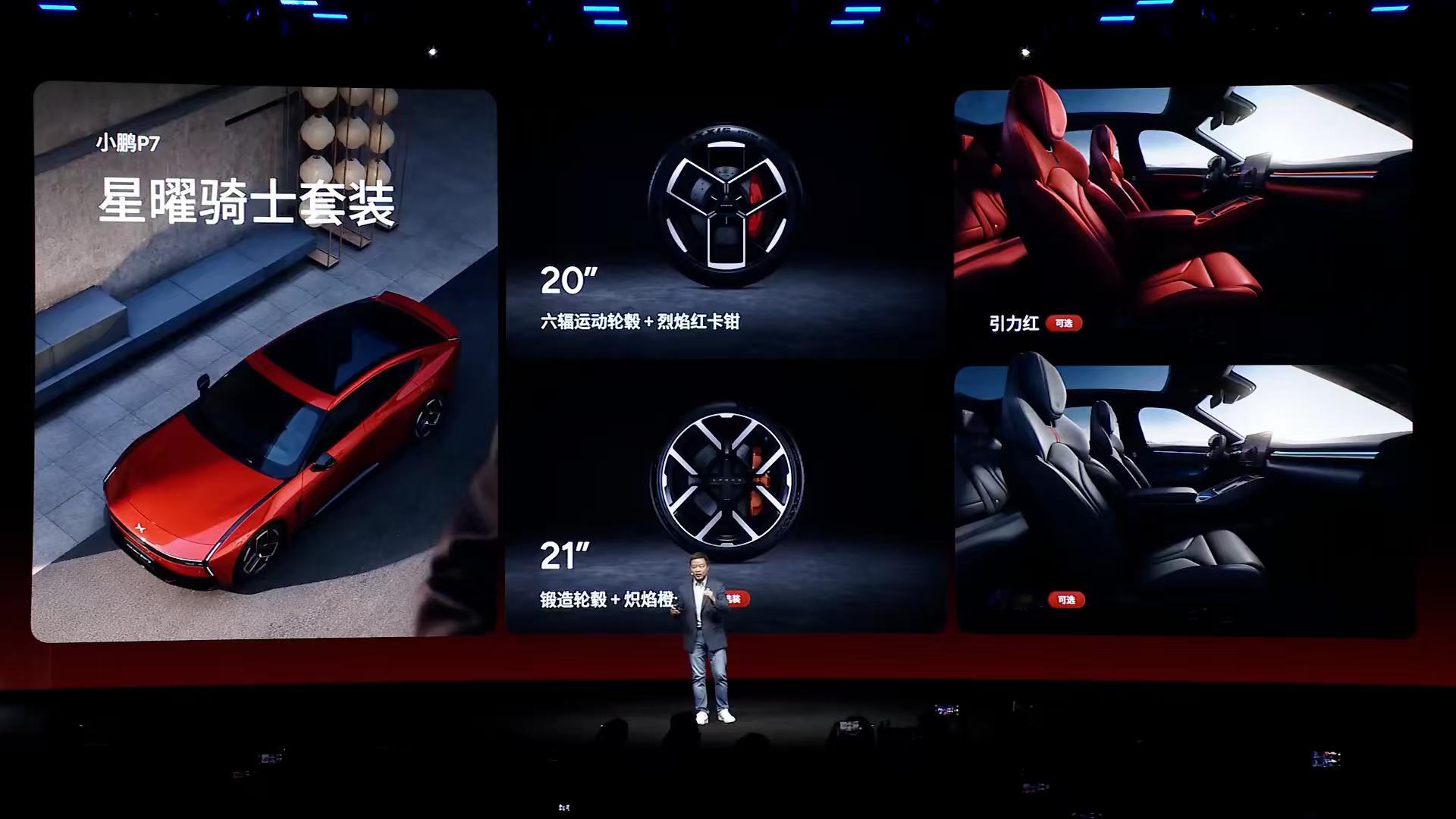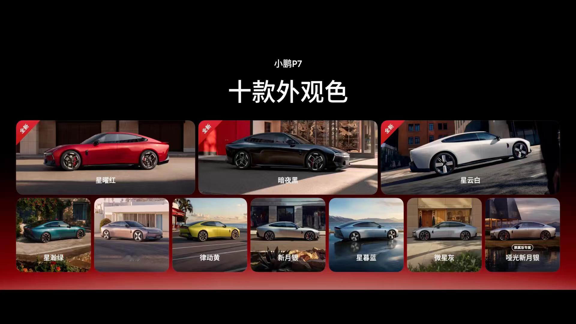 今晚的小鹏P7发布会,明显在外观和个性化表达上做了强化。新车新增了星曜红、暗夜黑、星云白三款外观车色,内饰则新增引力红、熔岩灰 两种风格,同时还带来一个20英寸六幅运动轮毂,继续强化 P7 作为一台运动轿跑的颜值标签和辨识度。