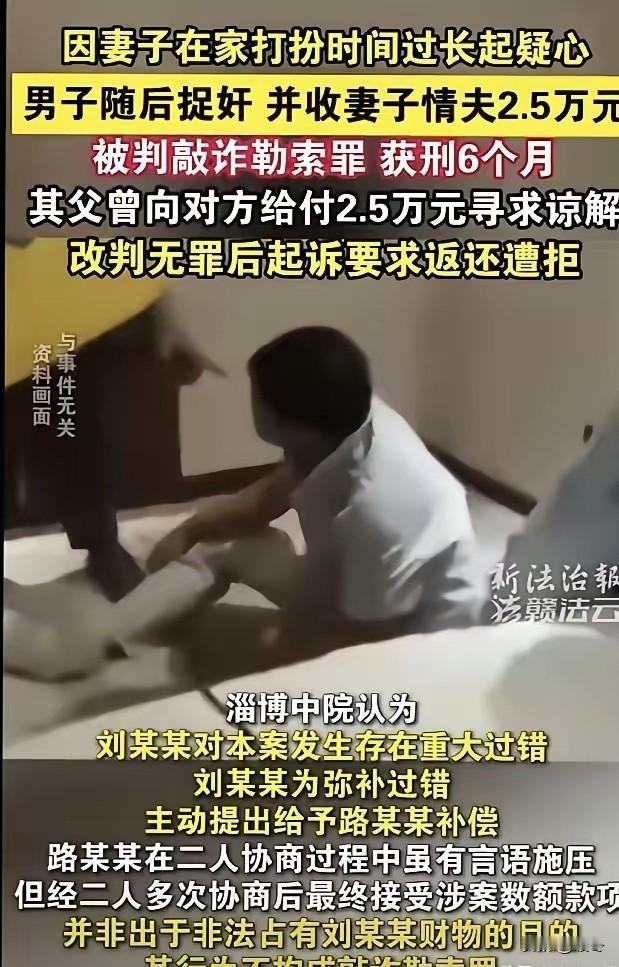 你说这世道怪不怪?淄博有个老哥,姓路,某天瞅见老婆出门送娃上辅导班,居然描眉画眼的。他心里咯噔一下:送个孩子而已,至于这么折腾吗?就跟后面去了。结果在辅导班楼下的酒店,推门进去——自己老婆跟陌生男人躺一块儿呢。孩子还在楼上上课,当妈的却在楼下干这档子事。路某那股火啊,压不住,给了那男的一拳。男的叫刘某,自知理亏,没敢还手,当场提出赔钱私了。两人掰扯半天,刘某转账2万5,路某收了。 事儿要是到这儿,也算民间私了。可刘某回头琢磨,这钱花得冤,报警说路某敲诈勒索。路某老爹怕儿子进去,赶紧把钱退了,刘某写了谅解书。结果呢?2021年,张店区法院判路某6个月,罚金5千。路某不服啊,我戴绿帽子还坐牢,奸夫淫妇屁事没有?上诉,淄博中院驳回,维持原判。 这判决当时我就看不懂。法律保护的是啥?刘某明知对方有老公,还睡人家老婆,这叫"违背公序良俗"吧?怎么反倒成了受害者?路某那一拳是冲动,可2万5是刘某主动提的补偿,怎么就变成"暴力威胁索要财物"了? 转机拖到2023年。山东高院看不下去,指令再审。淄博中院这回认账了:刘某过错在先,钱是自愿给的,路某不算敲诈,改判无罪。四年啊,路某背了案底、丢了脸面,才等来这句"无罪"。 可故事没完。路某现在想把那2万5要回来,连利息一共2万8,起诉刘某不当得利。3月13号,张店区法院说"诉讼主体不适格",给驳了。路某打算这周再上诉。 我琢磨着,这2万5到底该归谁?路某觉得,我无罪了,钱就该是我的。可法院说这官司不能这么打。那刘某呢?睡人家老婆,钱退了,谅解书拿了,最后白睡?这里头哪一环都透着别扭。 最扎心的是路某这四年。发现老婆出轨,打了一拳,收了笔补偿,结果差点成罪犯。现在翻案了,钱却要不回来。咱们老百姓遇上这种事,到底是该忍气吞声,还是该私了?私了又怕被反咬一口,走法律吧,四年才等来清白。 这案子最近又火,就是因为路某还要上诉。你说他能赢吗?我反正捏把汗。 信息源:淄博市张店区人民法院判决、淄博中院再审裁定、路某代理律师公开回应(2023-2025) 你们觉得,这2万5该不该还给路某?换你遇上这事,敢收那笔钱吗?评论区见。