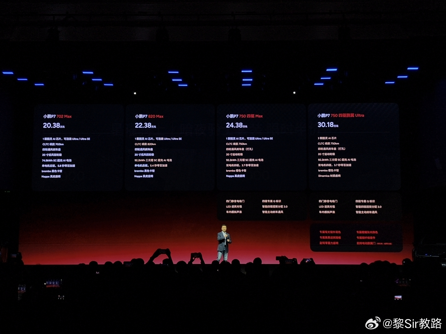 ·702 Max版 20.38万元·820 Max版 22.38万元·750 四驱 Max版24.38万元·750 四驱鹏翼 Ultra版 30.18万元在Max版基础上,加1.2万元即可升级为搭载2颗图灵AI芯片+第二代VLA的Ultra SE、加2万元可升级为搭载3颗图灵AI芯片+第二代VLA和VLM大模型的Ultra。