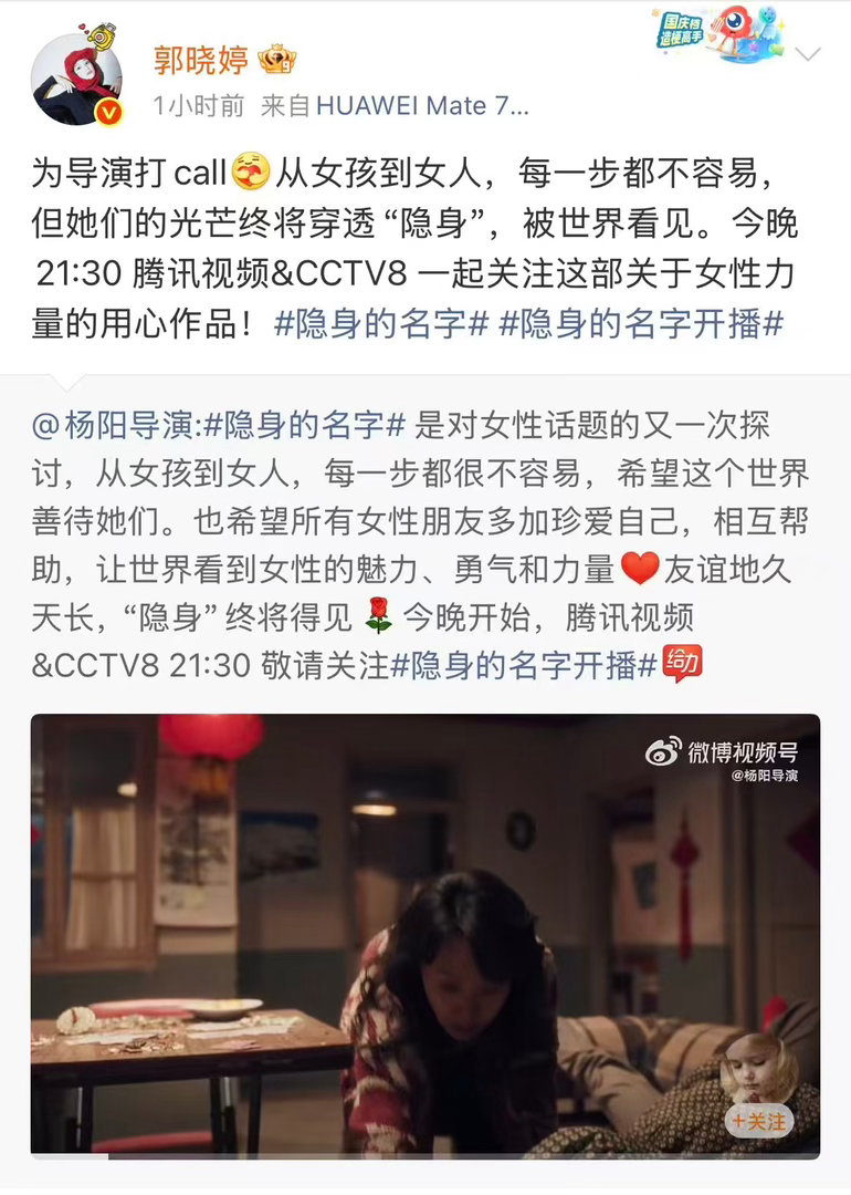 半个娱乐圈女艺人安利隐身的名字隐身的名字 开播这天,看到好多女演员在转发同一部剧。杨紫写了,钟楚曦写了,李沁金晨林允都写了。不是那种套话,是每个人都在说点自己的感受。杨阳导演也发了一篇长文,把创作初衷摊开来讲。全女班底拍女性群像,她们比谁都懂这有多难得。