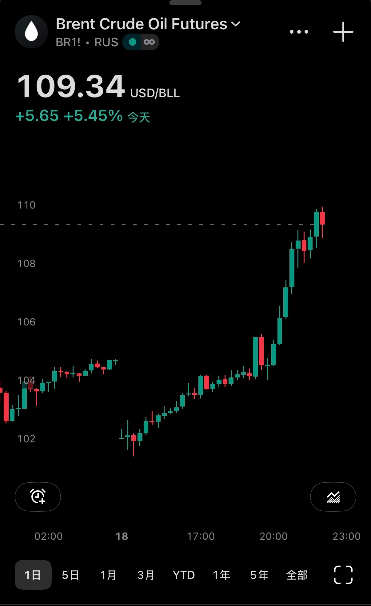 🔻欧洲TTF天然气价格上涨6.7%,至每兆瓦时55.02欧元。🔻布油109美
