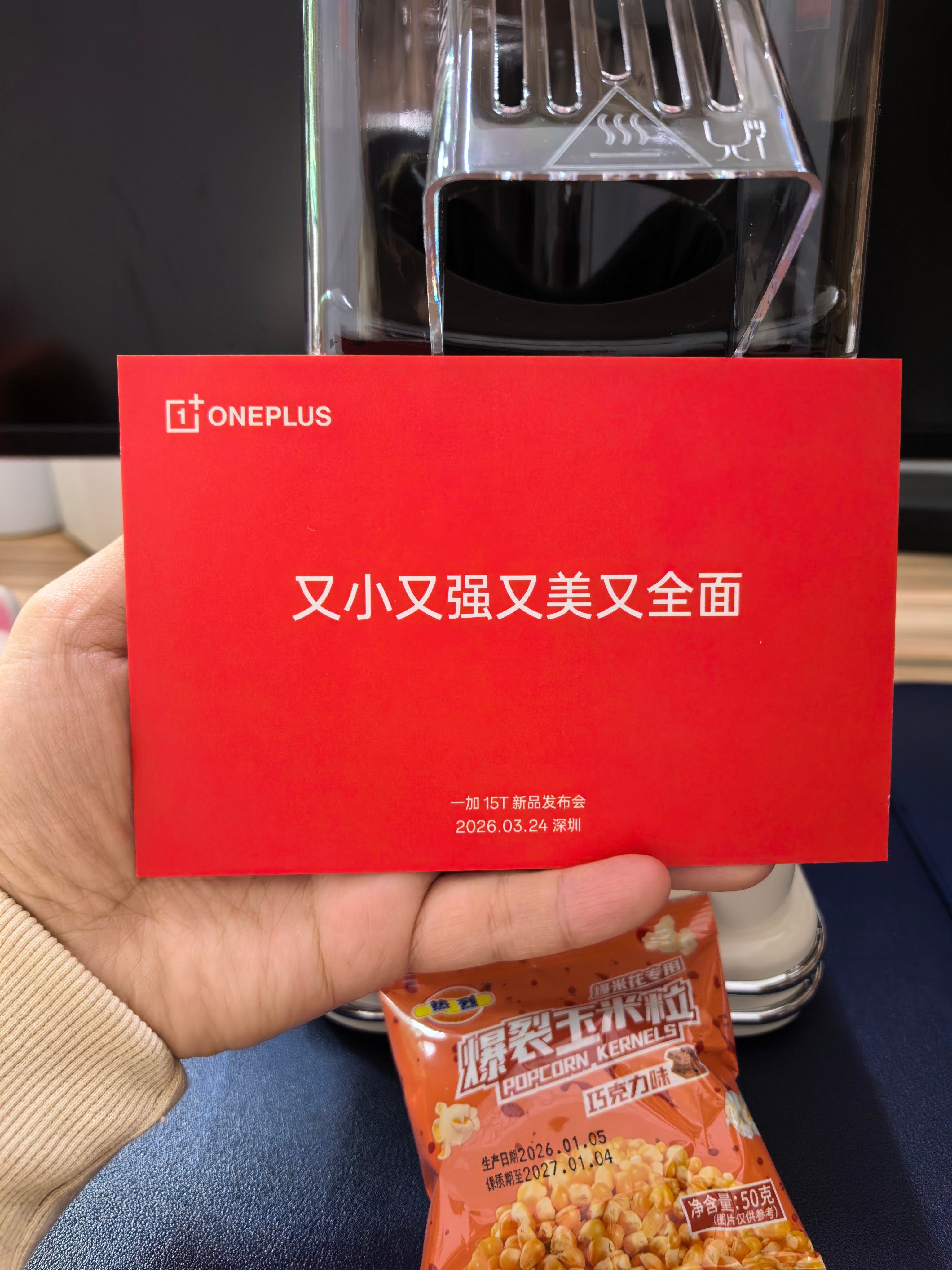 子弹兄今天收到了一加寄来的一加15T新品发布会邀请函,居然是一台爆米花机,还有一袋巧克力味的玉米粒,让我自己亲手做爆米花吃,这也太有意思了吧。有了它,我也算是实现爆米花自由了。期待3月24号深圳的发布会,到时候不见不散哦。