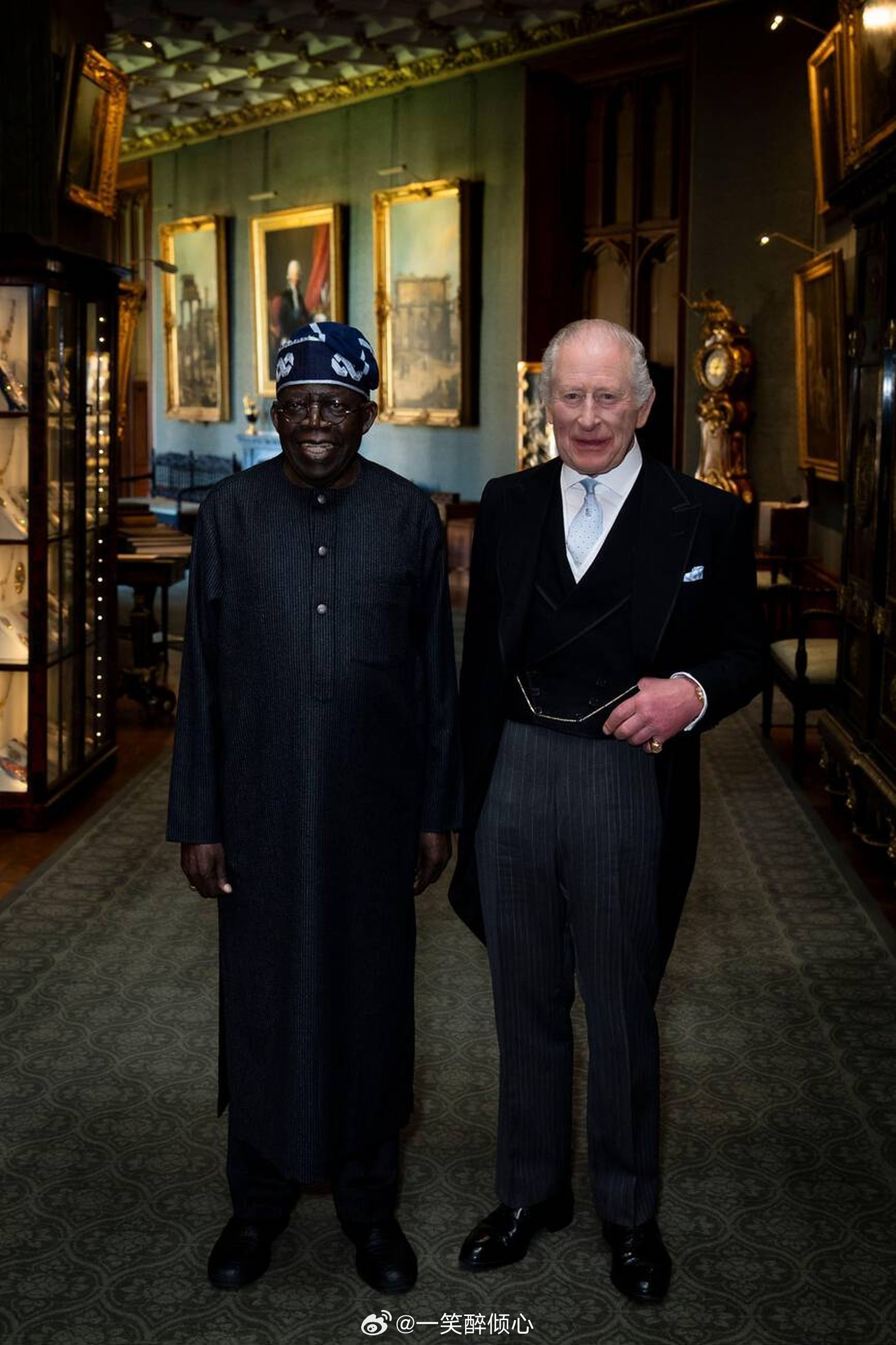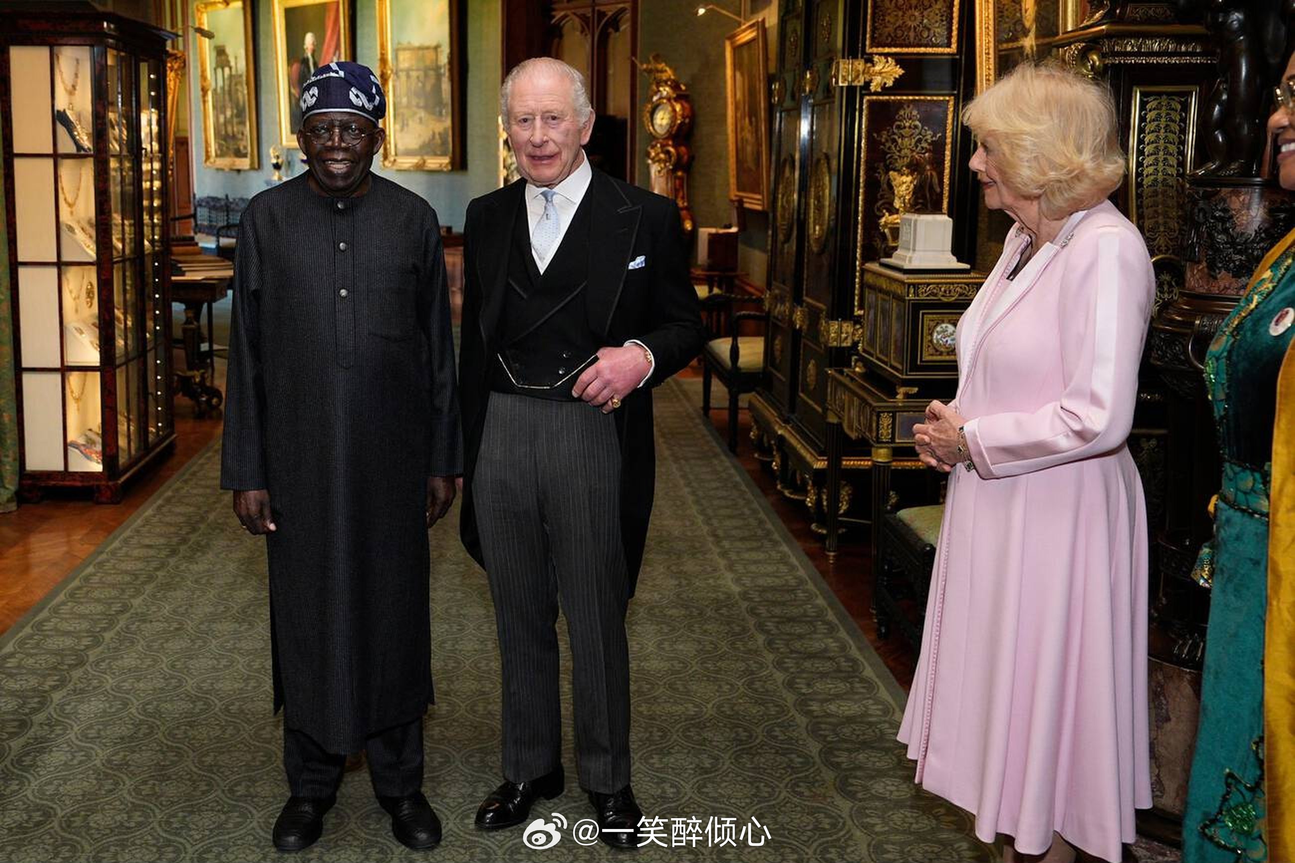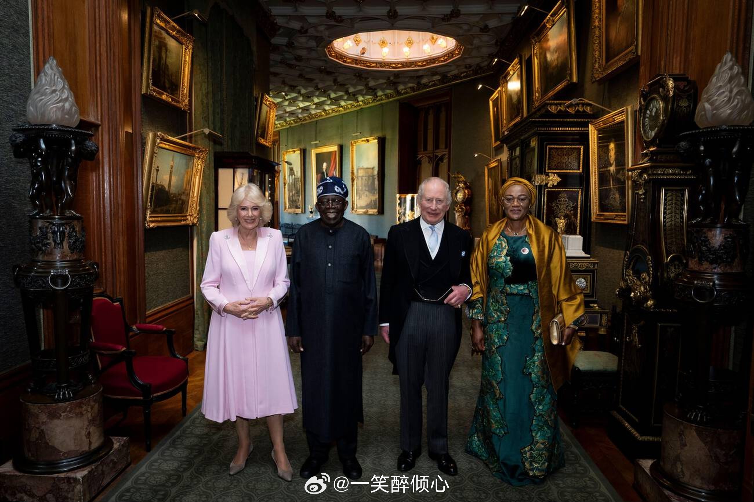 【不吃午餐,改开会议】今天查尔斯三世和卡米拉王后在温莎城堡与尼日利亚总统尼日利亚Bola Ahmed Tinubu及其妻子Oluremi Tinubu合影留念🇳🇬随后,查尔斯三世和尼日利亚总统举行私人会面。