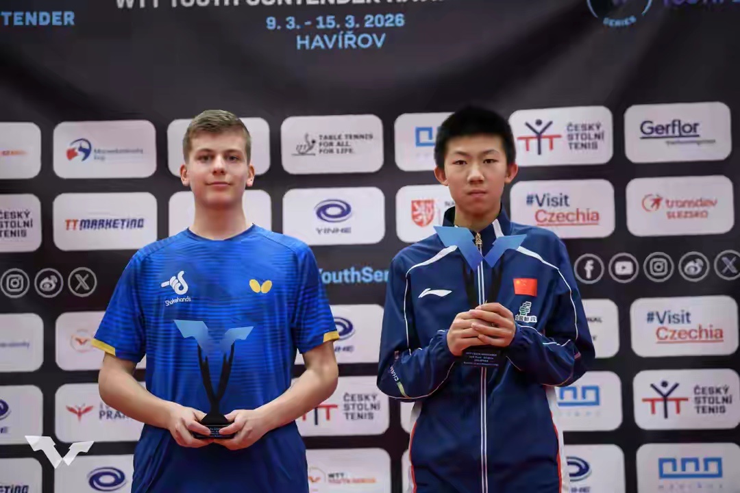 勇夺3冠1亚!中国男乒又一14岁新星闪耀崛起:追赶王楚钦林诗栋?连续参加3站WTT青少年巡回赛,14岁的陈逸舟迎来了凶猛崛起,他连续3站比赛打进U15组男单决赛,2次夺冠。此外,陈逸舟还夺得了一个混双U15组冠军。3站比赛,陈逸舟总共获得了3个冠军和1个亚军。最近几年,中国男乒陷入了青黄不接的状况。相比之下,外协会的00后选手甚至05后选手已经在世界乒坛占据重要位置。在樊振东还没回归国家队的情况下,中国男乒靠王楚钦苦苦支撑。林诗栋一度崛起,冲到世界排名第一,但是他的打法被对手研究透之后,成绩直线下滑。向鹏、陈垣宇、黄友政、陈俊菘等新星并不稳定。所幸,近期又涌现出了温瑞博这位新星。但是,对于中国男乒来说,要想重新获得统治地位,必须有更多的年轻新星闪耀崛起。国乒需要大力挖掘10后新星了。14岁的陈逸舟展现了很不错的潜力。他在WTT青少年常规挑战赛哈维若夫站又打出了非常出色的表现。中国U15男乒只有他一人打进这一站的U15组四强,半决赛陈逸舟3比0击败翁德雷·莫拉韦克。到了决赛,陈逸舟和涅维日恩对决,第一局11比5获胜,第二局11比8获胜,第三局11比7获胜,从而以独当一面的姿态夺得了冠军。中国男乒U15队现在俨然靠陈逸舟挑大梁。陈逸舟在弗瓦迪斯瓦沃沃站杀进U15男单决赛,3比1击败雅库布·图尔基获得冠军。陈逸舟还在柏林站杀进U15男单决赛,但是2比3输给科斯·戈麦斯获得亚军。陈逸舟还和佟梓缘联手,杀进弗瓦迪斯瓦沃沃站U15混双决赛,并且以3比0击败跨国组合沙姆斯/爱丽莎夺得冠军。陈逸舟来自浙江省江山市,四五岁的时候喜欢上乒乓球,6岁那年开始进行专业的乒乓球训练。2023年,陈逸舟进入浙江省乒乓球队。2024年,陈逸舟获得全国青少年乒乓球精英系列赛丙组男单冠军。2025年,陈逸舟通过国乒青年队交流选拔赛进入国乒二队。2026年1月,陈逸舟通过选拔进入中国U15乒乓球队,征战一系列国际比赛。陈逸舟还将在4月份跟随中国U15队征战WTT青少年巡回赛。今年陈逸舟还将参加亚青赛和世青赛。从目前来看,陈逸舟有成为中国U15男乒顶梁柱的架势。国乒需要更多的新星崛起,为王楚钦、林诗栋分担压力。陈逸舟在洛杉矶奥运周期应该还是以青少年级别的比赛为主,也许下一个奥运周期,他可以在成年组的比赛也迎来闪耀时刻。