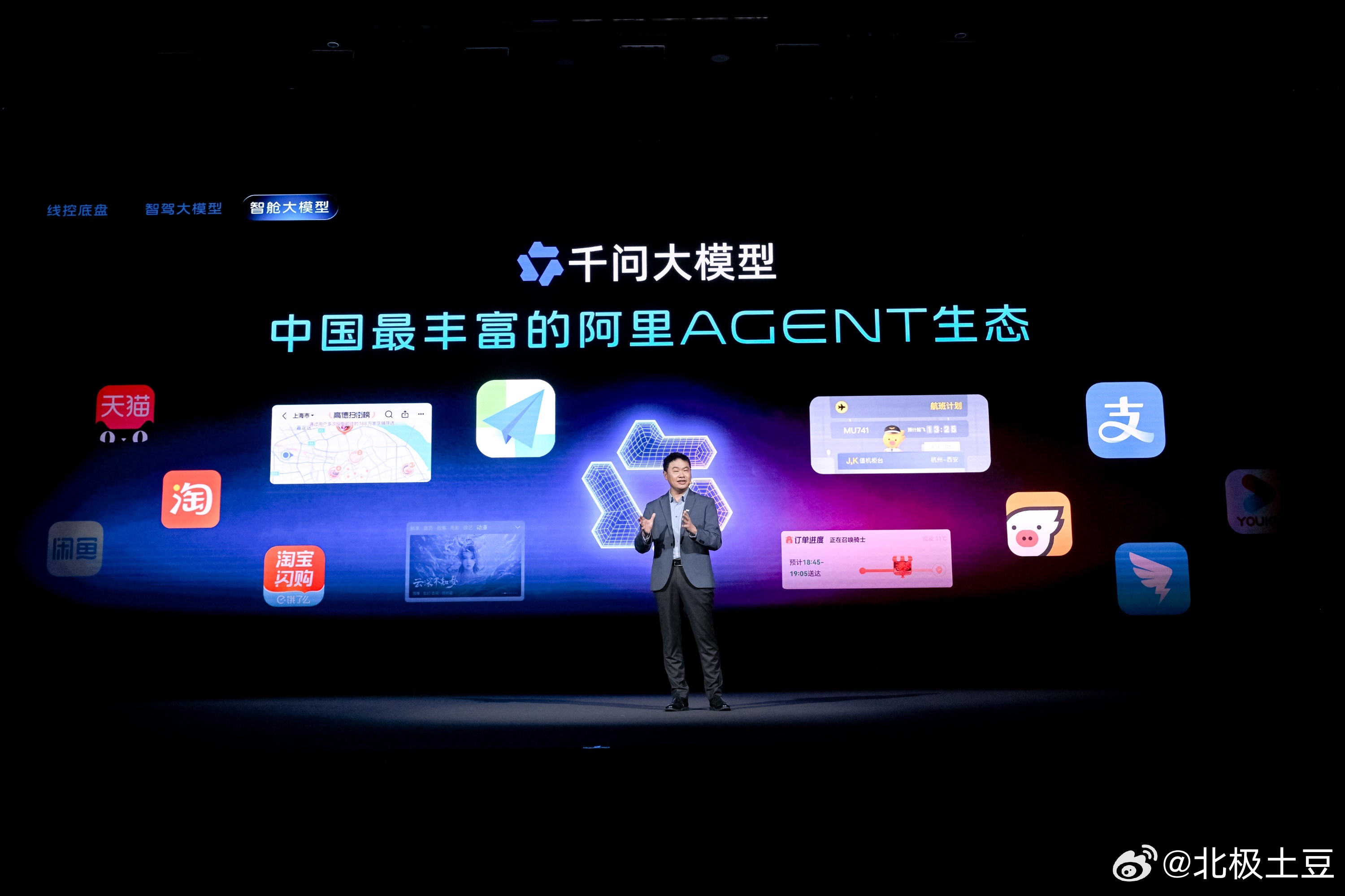 第三层则是全球首搭的阿里千问大模型,作为顶尖开源大模型,生态与算力行业领先,可深度打通支付宝、高德、淘宝等生活服务,实现一句话理解需求、自主规划、全程代劳。