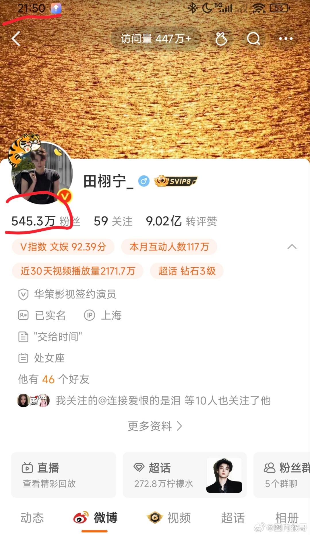 从下午两点五十到目前共7个小时,田栩宁粉丝再暴涨-2000个,反向增粉速度明显加快,后知后觉的柠檬水都要慢慢醒来了,再接再厉,加油加油