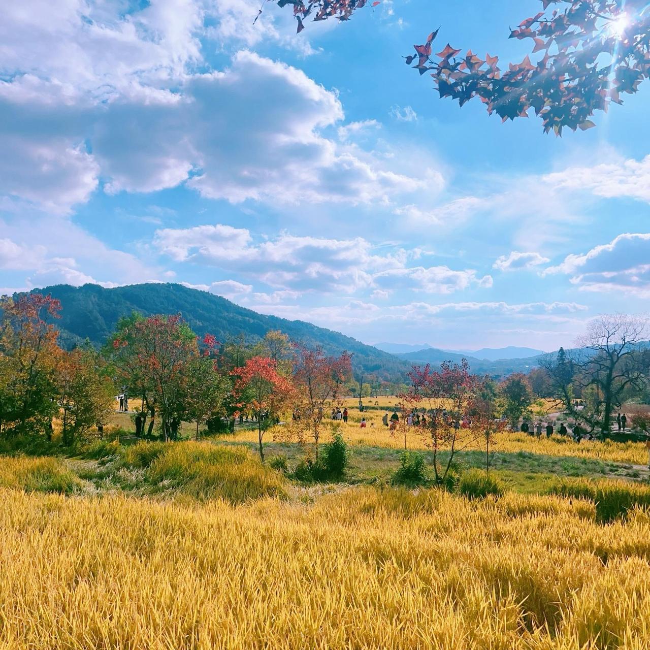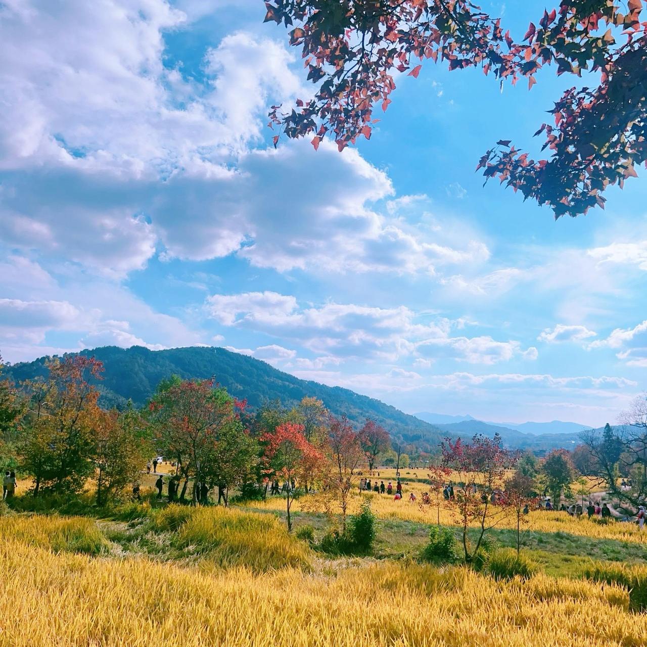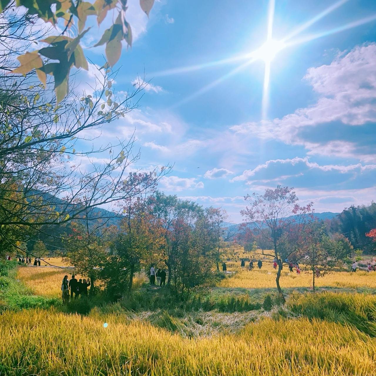 在皖南的秋意里泡了一整天,从稻田的金浪里抬头撞见层林渐染的远山,连风里都裹着糖炒栗子的香气。此刻突然理解了古人说的‘平分秋色’,不是各占一半的清冷,是山与田、蓝与红都能尽兴的热闹。”
