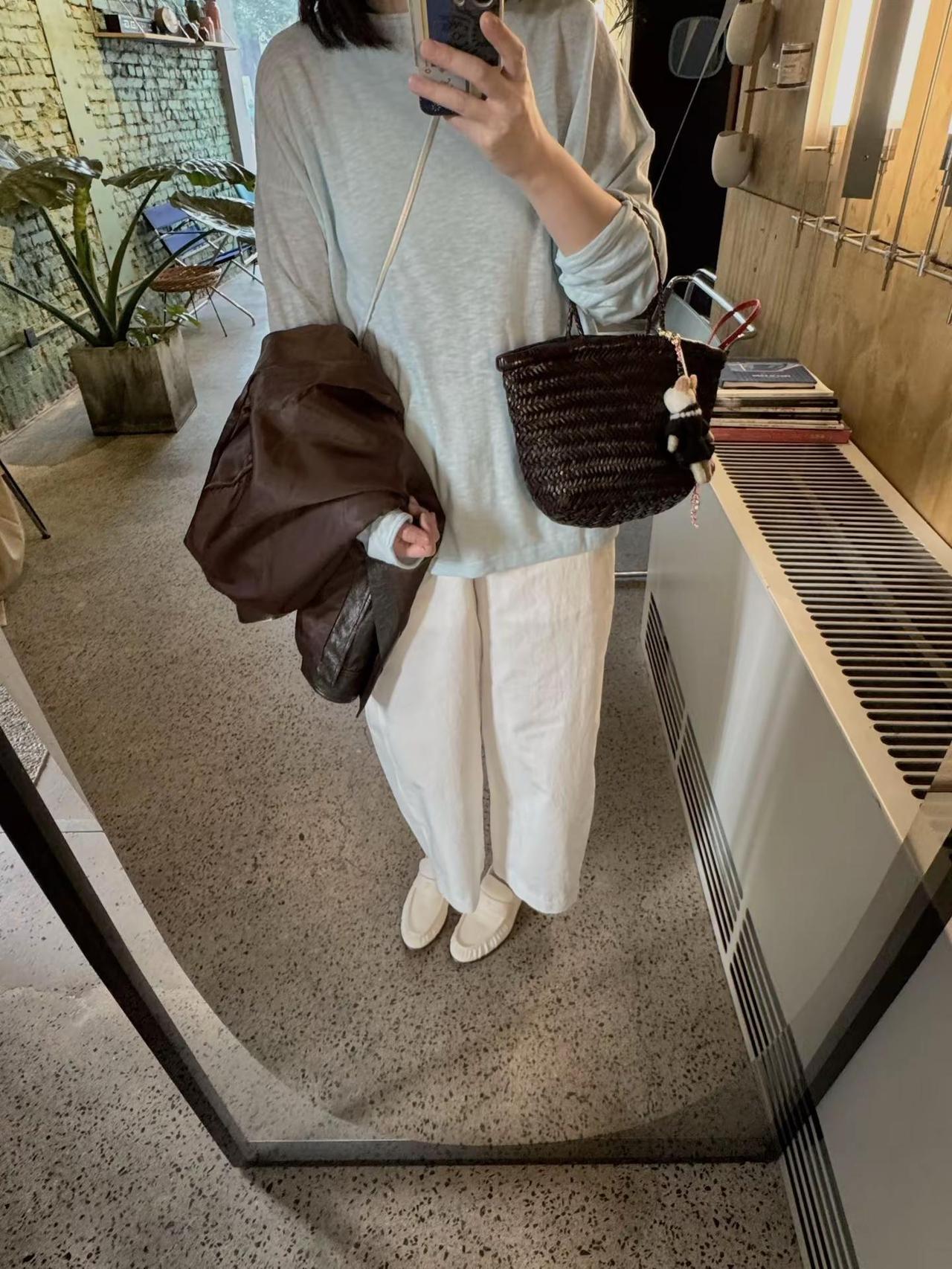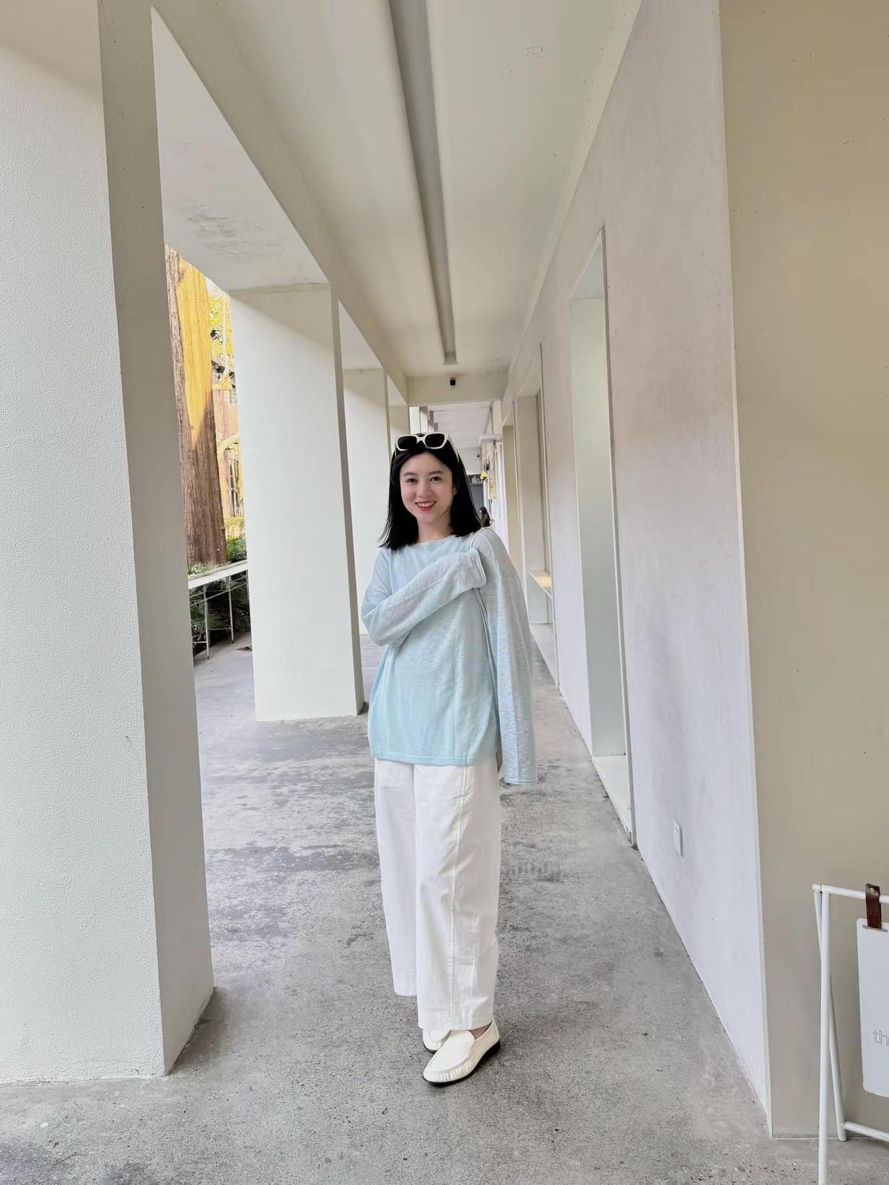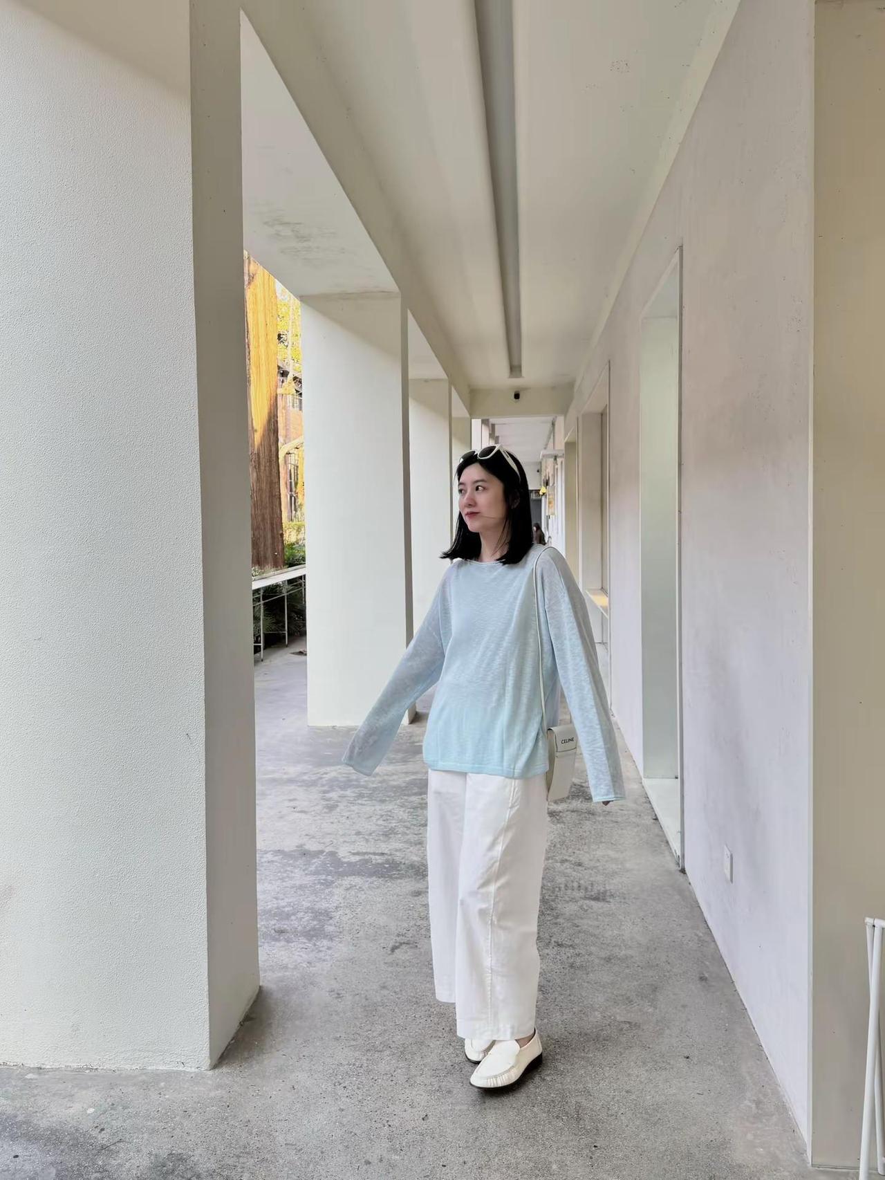 穿点亮色小衫~简单但有效!ootd 彩色长袖 通勤穿搭 白裤子穿搭
