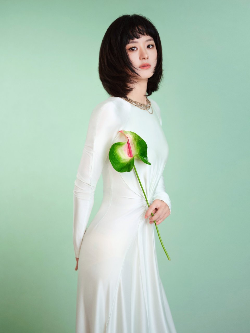 赵丽颖直播出图,这套白色裙好漂亮,温婉俏皮