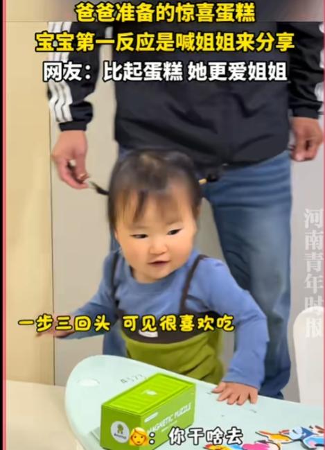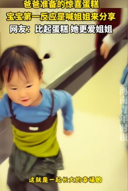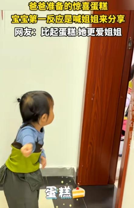 此刻,二胎的幸福被彻底具象化了。 山东,一爸爸悄悄为孩子准备了惊喜蛋糕,小宝宝看见的瞬间忍不住“哇”地惊叹,紧接着三步一回头,跌跌撞撞地奔向房间,一边敲门一边奶声奶气地喊姐姐出来分享。 在话都说不完整的年纪,在面对自己最喜爱的蛋糕时,他的第一反应不是独享,而是第一时间想到姐姐。这就是二胎家庭最动人的模样。 这不仅仅是父母用心教育的结果,更是天性最自然的流露,是刻在骨子里的温柔,是血脉相连的本能,在一瞬间给出最温暖的答案。 这种血脉亲情自带强大的感染力,轻易就能戳中人心,让旁观者也跟着感到温暖柔软。在这个匆忙又浮躁的时代,这般不加修饰、纯粹真挚的情感,显得格外珍贵。 看着这温馨治愈的一幕,不禁让人感慨,二胎家庭里孩子之间的情谊有多难得。他们从小相伴长大,一起哭一起笑,快乐时第一时间分享,难过时彼此陪伴安慰。未来的路上,他们会是彼此最安心的依靠。 也许长大后,他们会有小打小闹、小吵小闹,但那些细碎的矛盾,永远冲淡不了血脉相连的温暖。就像这次分享蛋糕的小小瞬间,会悄悄藏进童年里,成为一生都值得回味的甜。 这个小小的家,因为两个孩子的陪伴而满是烟火与温柔。他们的笑容、他们的依赖、他们不加掩饰的爱意,都是生活里最亮的光。相信这份手足情深会一路相伴,成为他们漫长人生中,最珍贵、最踏实的财富。