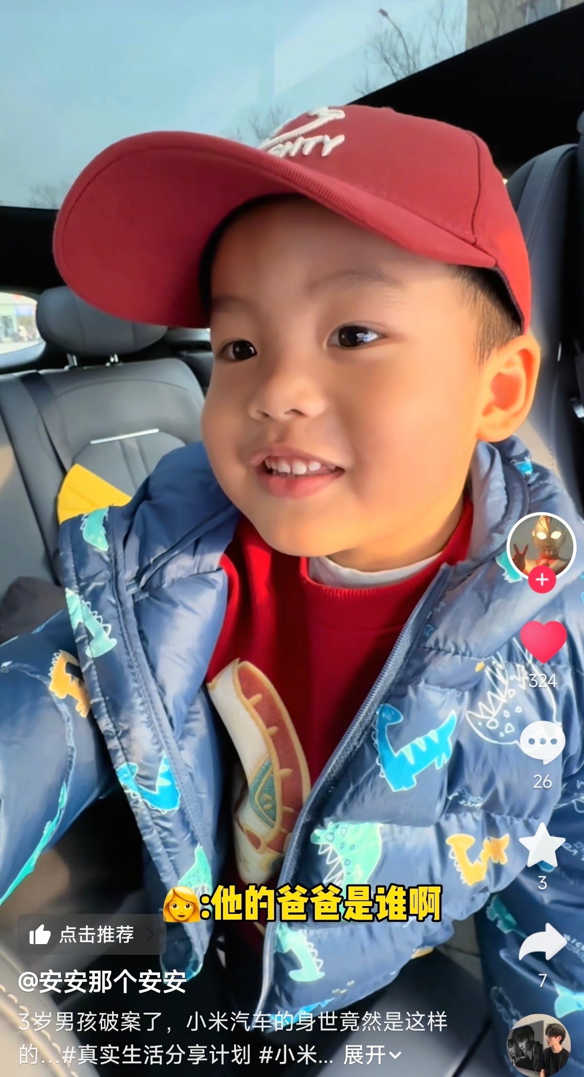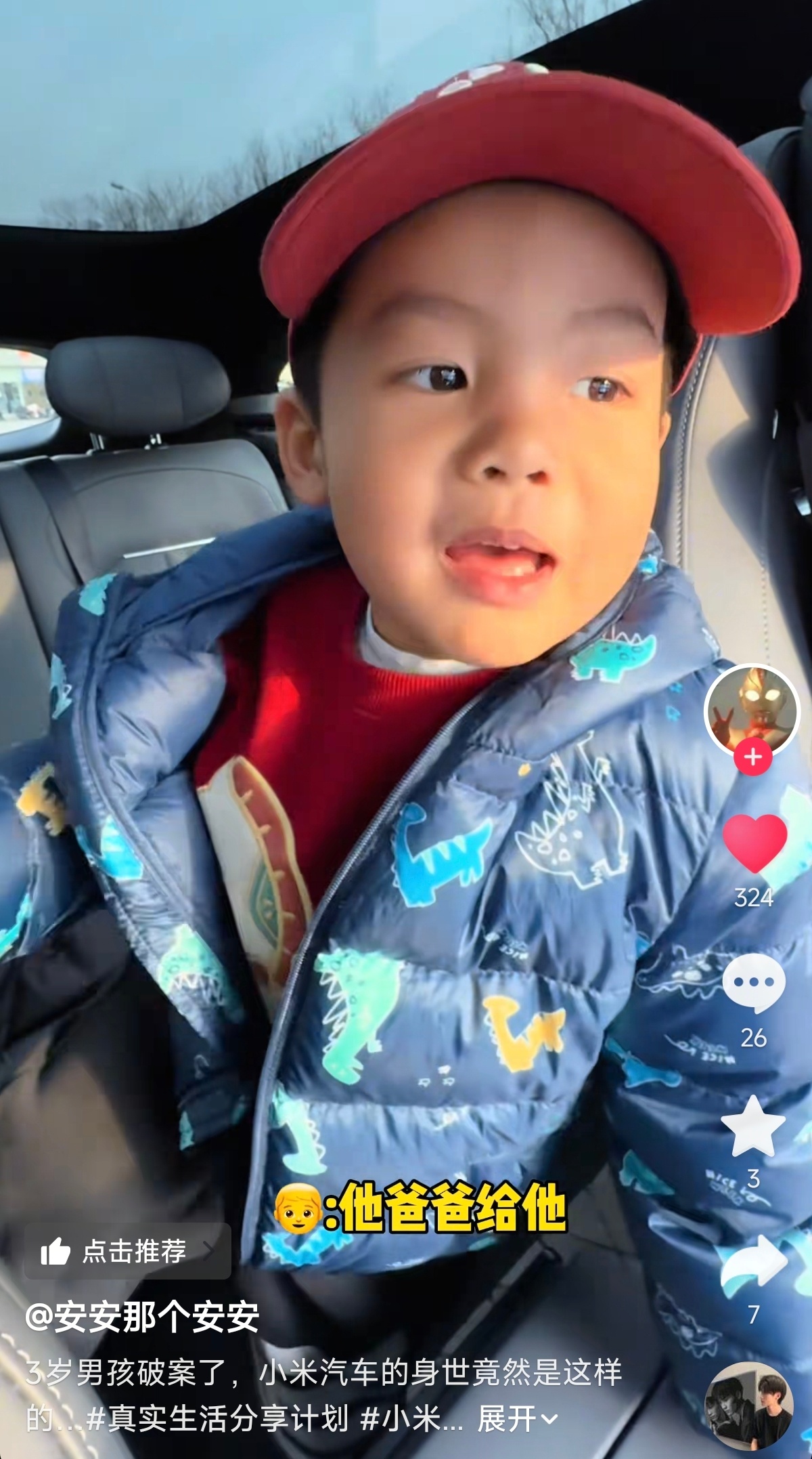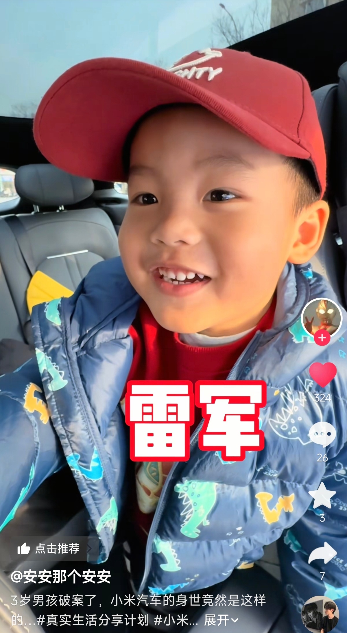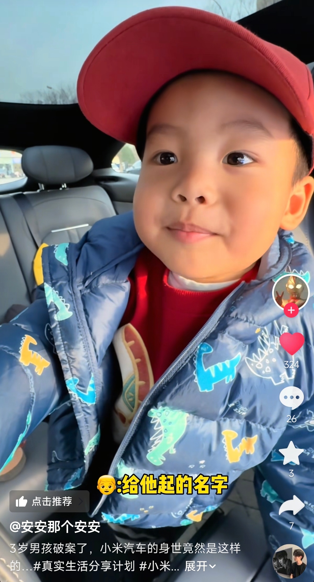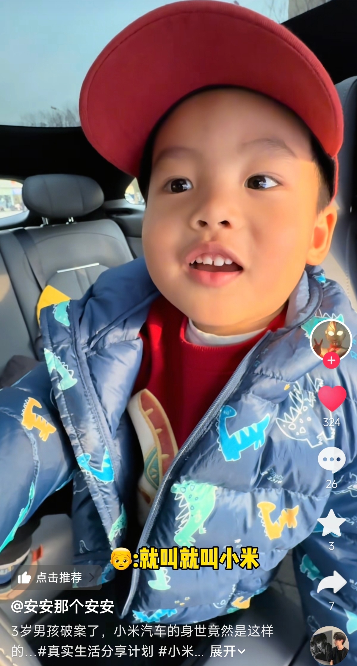问:小米汽车为什么叫小米呀?小朋友:他爸爸给他起的名字,就叫就叫小米。问:他的爸