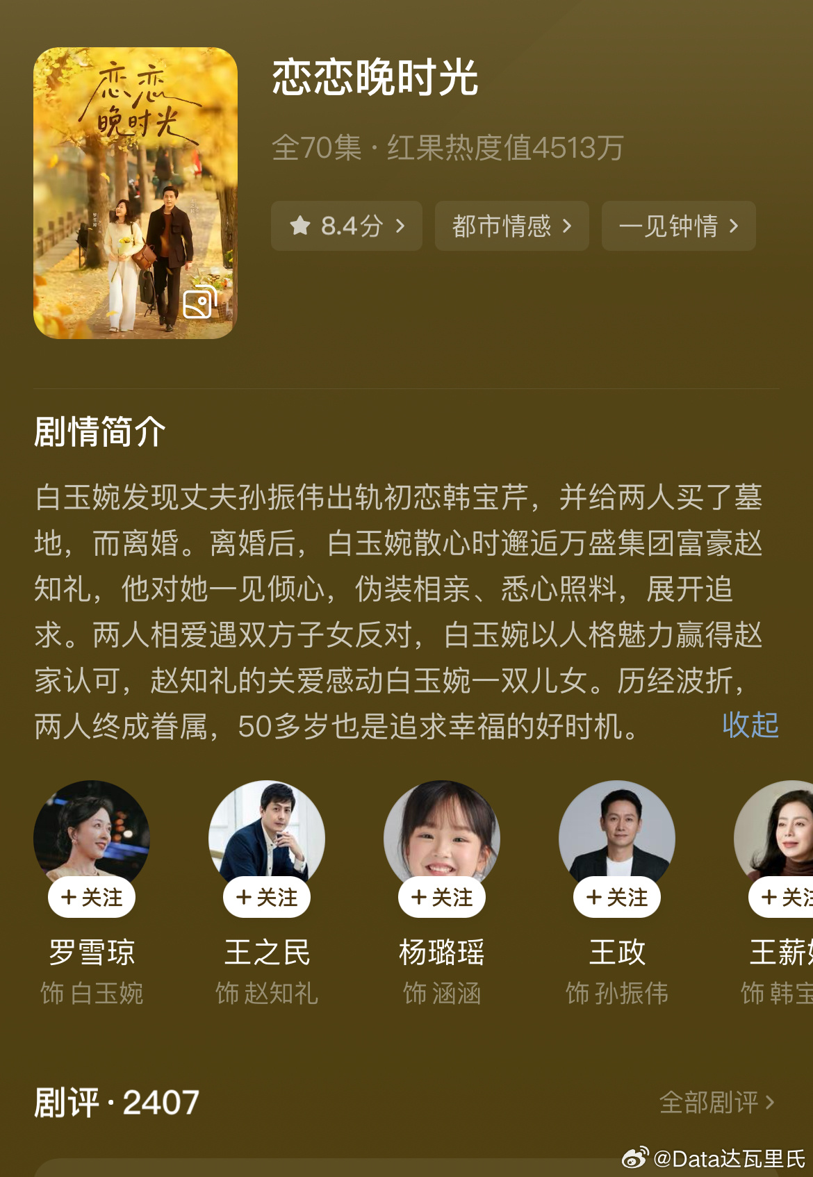 《恋恋晚时光》老年霸总爱上50岁离婚的她这是看上中老年妇女市场了