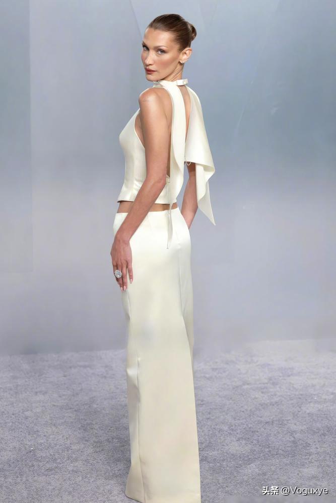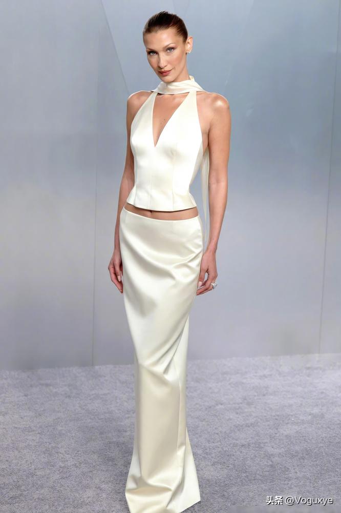 奥斯卡红毯出大事了。肯豆一身高定卯足了劲,风头却被贝拉一件破布抢光了。 肯豆那身香奈儿,又是亮片又是刺绣,仙气飘飘,奔着在逃公主去的,每个细节都在喊:快看我! 你再看贝拉,就一件奶油白缎面,光溜溜什么装饰都没,连围巾滑下来,都成了漫不经心的武器。 红毯的赢家,从来不是穿得最贵的那个,而是看起来最不费力的那个。