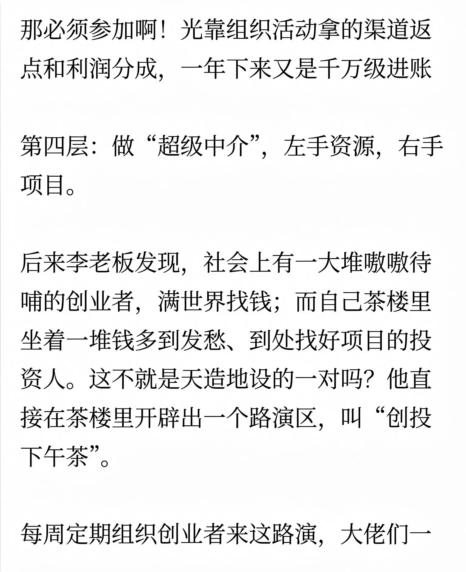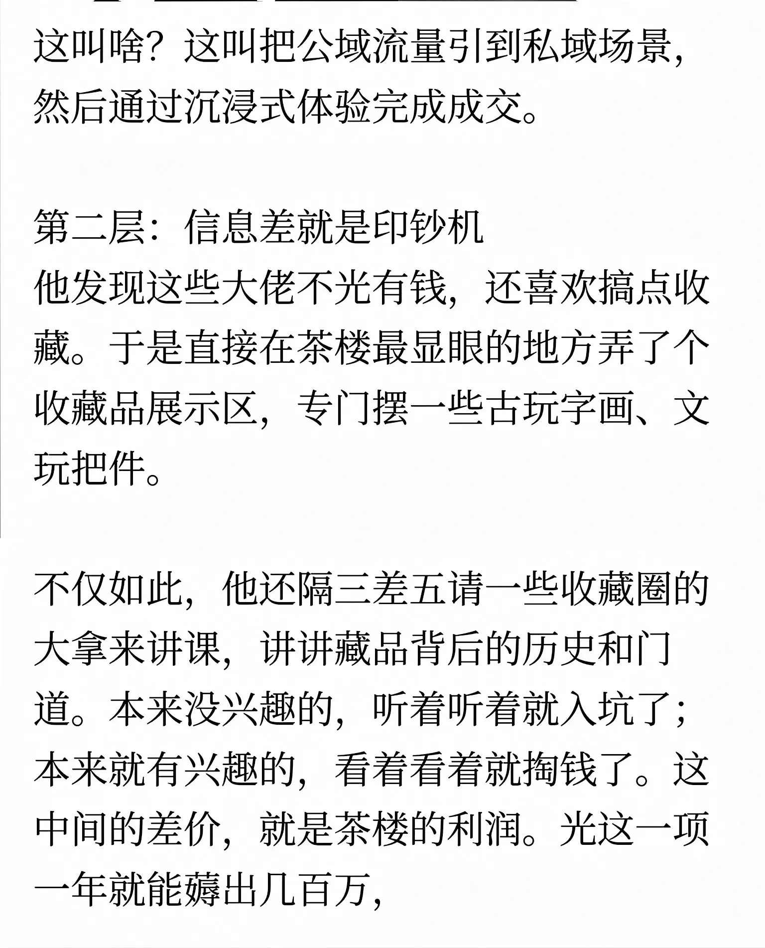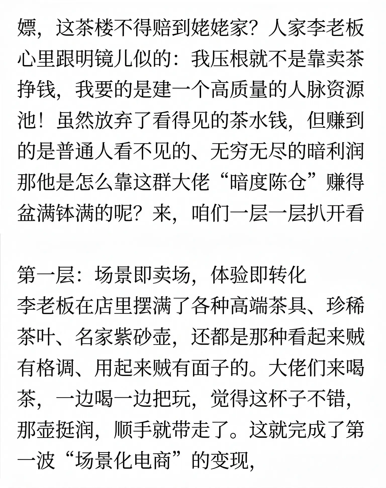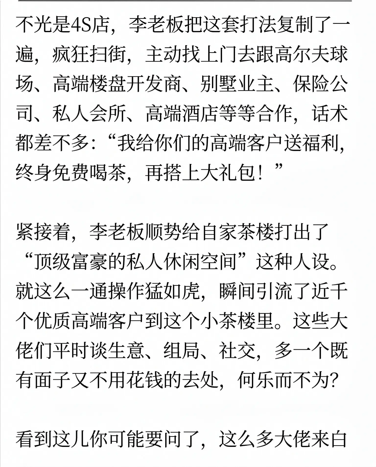 浙江一位90后小伙开茶楼,不到三年净赚一个亿,用全新商业模式实现降维打击。他不走传统卖茶路线,而是把茶楼打造成高端圈层社交平台。先通过豪车4S店合作,免费赠送终身VIP与高端礼品,精准锁定高净值人群;再推出合伙人计划,以折扣与推荐提成激活裂变。盈利不靠茶位费,而是靠高端茶礼、收藏品交易、商务包厢、圈层活动与资源对接。他把空间变成人脉枢纽,用免费引流、会员锁客、多元变现,把小茶楼做成高价值商业入口,彻底刷新行业认知。