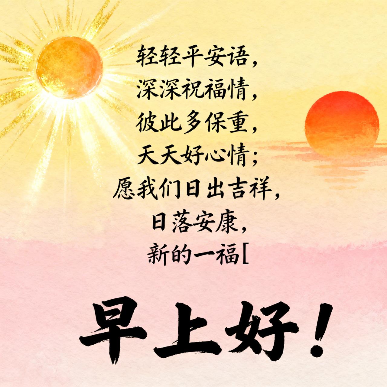 早安唯美祝福图片分享轻轻平安语,深深祝福情,彼此多保重,天天好心情;愿我们日出吉祥,日落安康,新的一天一切顺利、幸福吉祥[福] 早上好!