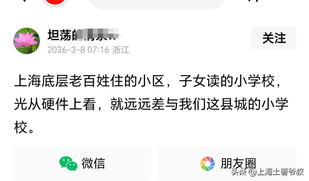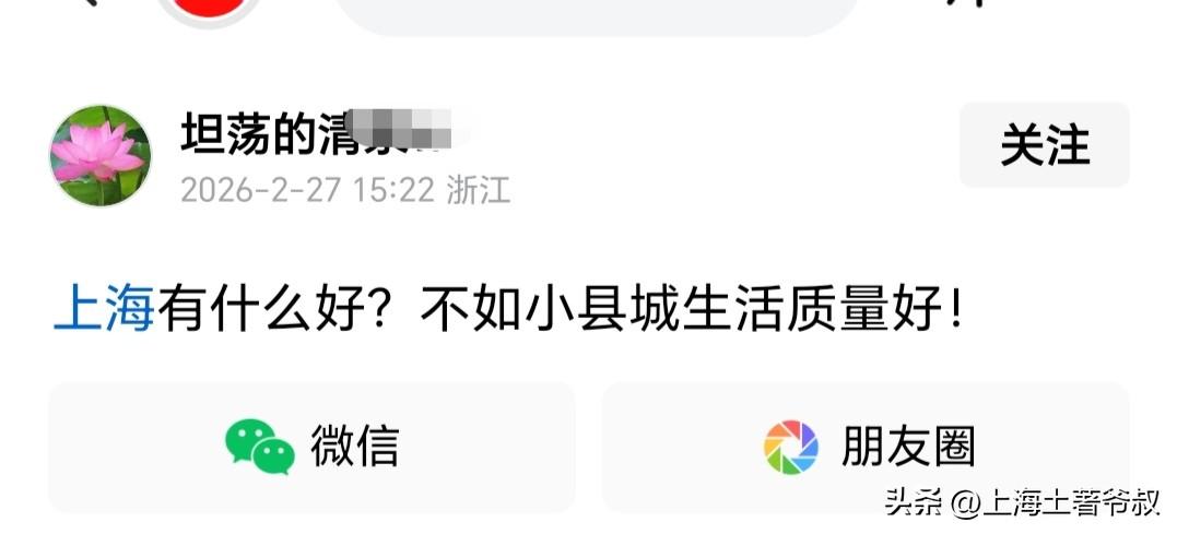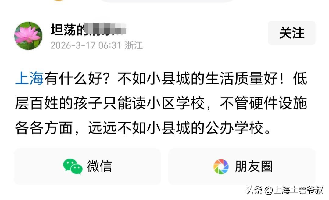 有一点我始终想不明白,同是江浙沪人,为啥某些浙江人对上海的偏见很大?最近又看到一个浙江德清人的帖子,他多次发帖吐槽上海,说上海有什么好的,上海人的生活质量还不如他们小县城呢!底层上海人的孩子只能读小区学校,远不如他们德清小县城的公办学校。他称我们德清企业职工每月退休金90元,生活质量比上海人还高呢!。有网友质疑称上海有小区学校?还有网友吐槽称为啥德清的企业员工退休工资才90元一个月?