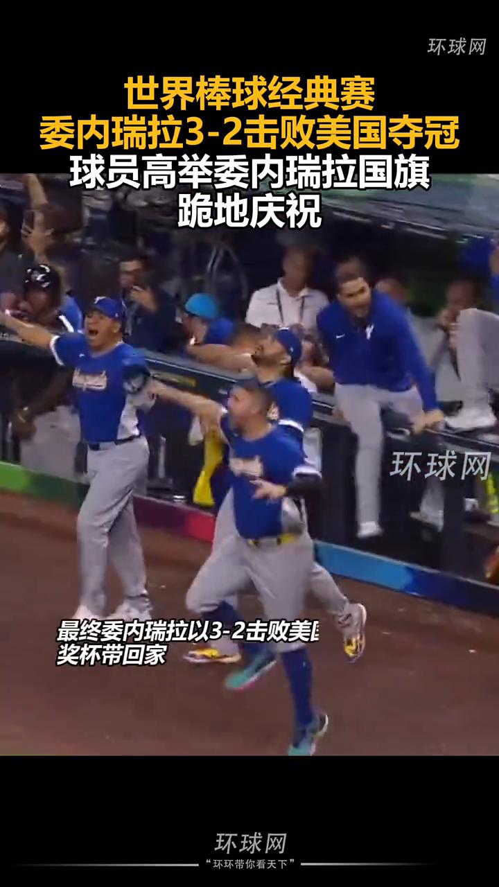 世界棒球经典赛:委内瑞拉3-2击败美国夺冠,球员高举委内瑞拉国旗跪地庆祝。 环球网。 据MLB美职棒大联盟3月18日消息,在2026年世界棒球经典赛冠军战,委内瑞拉率先取得领先,美国队奋力反扑追平,但委内瑞拉最终在9局上半打出超前分,奠定了胜局。最终委内瑞拉以3-2击败美国队,将冠军奖杯带回家。
