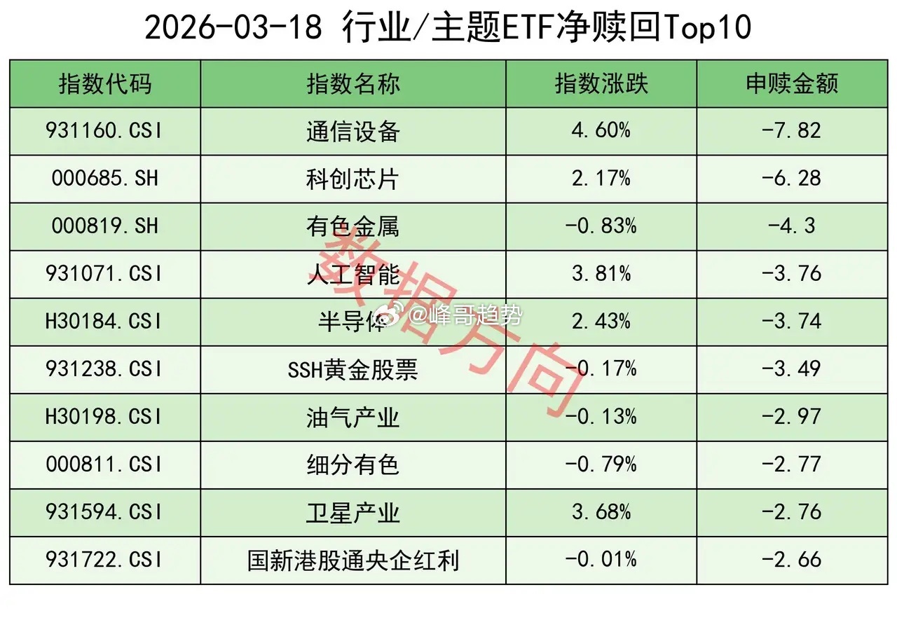 通信设备指数(-7.82亿)、科创芯片指数(-6.28亿)、人工智能指数(-3.76亿)、半导体指数(-3.74亿)、卫星产业指数(-2.76亿),涨幅较好的科技方向一起被净赎回。