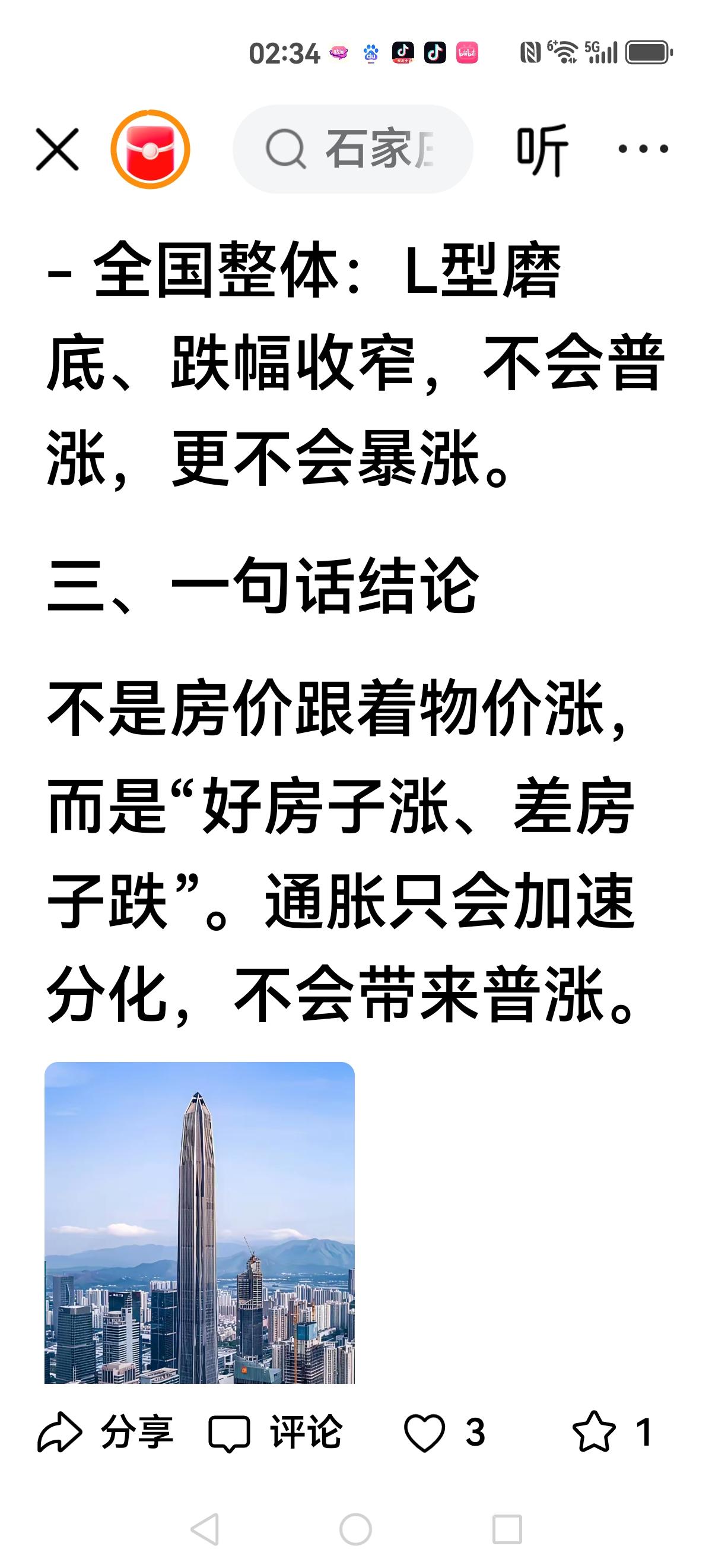 两大迹象显示房地产必须稳住: 【求是】发表两篇重磅文章,表明房地产是居民财富的重要来源,是国民经济的支柱产业。 同时砸向房地产7700亿资金,真金白银稳定房地产。 可以看出虽然房地产赛道不是主要发展方向,但过于下滑严重影响个人与国民经济的内在信心。 随着国家正在提倡温和的通货膨胀,物价等开始上涨,最终也会传导房价。 综合因素,房地产求稳,稳中有涨是大势所趋。