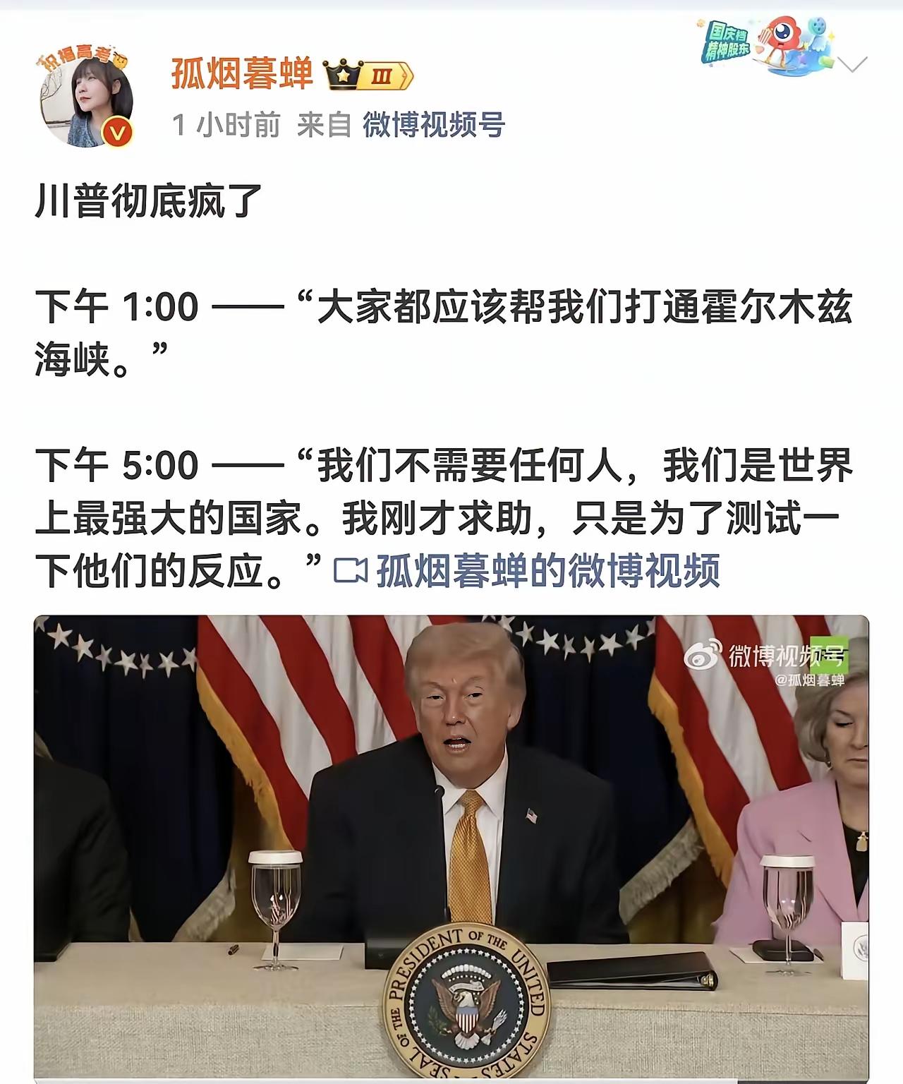 【访华之前的暗战】 特朗普在中东战火,不断扩大斩首行动,伊朗情报部长伊斯梅尔·哈提卜遇害。 加上前不久拉里贾尼父子被斩首。 导致伊朗全面反扑,战火燃烧到沙特,阿联酋,卡塔尔 此时特朗普只有一个选择,彻底打垮伊朗,不然后祸无穷,而且光靠美国还不行,必须拉上欧盟等国家。 那么特朗普目前访华当然是拉拢施压双重意思,当然还要看伊朗战局变化,因而特朗普施展两手: 给日本战斧导弹400枚,一边给弯弯军售140亿, 那么为访华为主题的的先手做好铺垫。