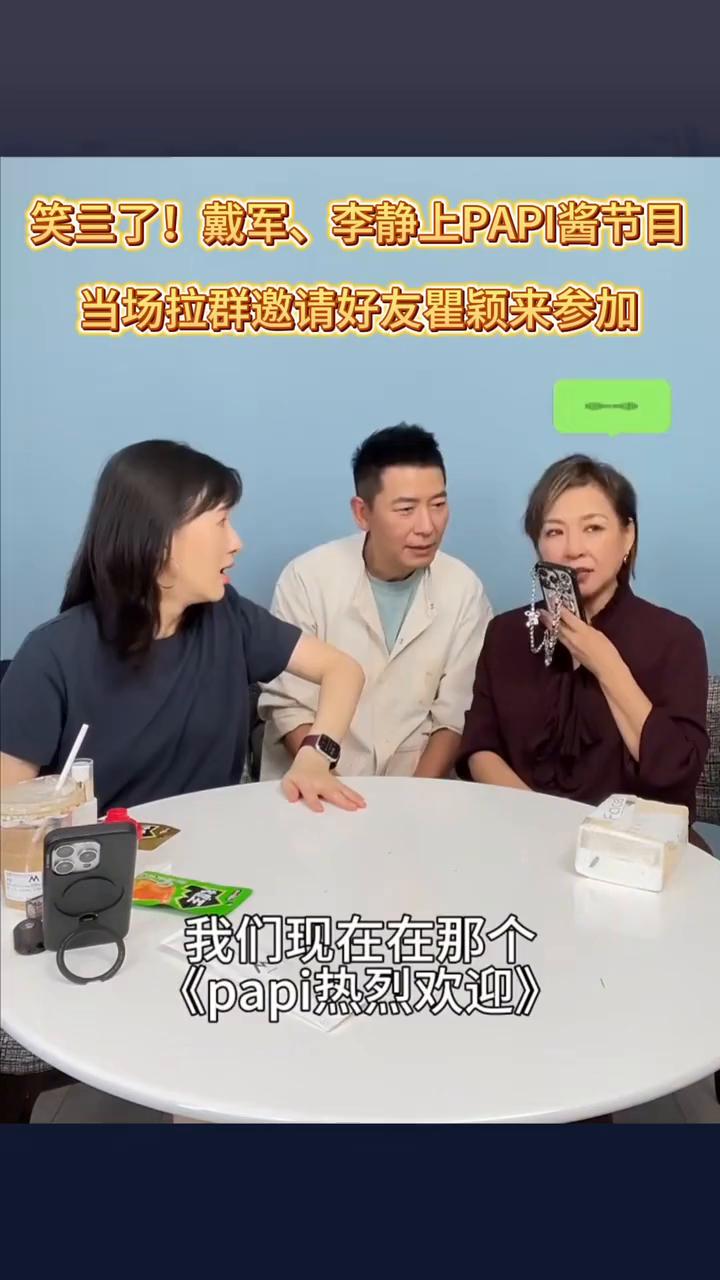 笑三了!戴军、李静上PAPI酱节目,当场拉群邀请好友瞿颖来参加。 这一次也特别谢谢你,你们这节目播完以后涌入了很多粉丝去扒。 真的,我上了这个节目以后,马上这边的粉丝又去找我其他的音频。 因为《你,静不下来》第一期,我们俩跟瞿颖那期全是在考古以前的段子,因为瞿颖也特别逗。 没有,她一定要来。 颖姐到你了。 静姐现在在拉群。 太快了。 静姐现在在《papi热烈欢迎》,我跟军哥都在。 不是返场了,这节目太好了。 军哥就上了这个节目,翻红了。